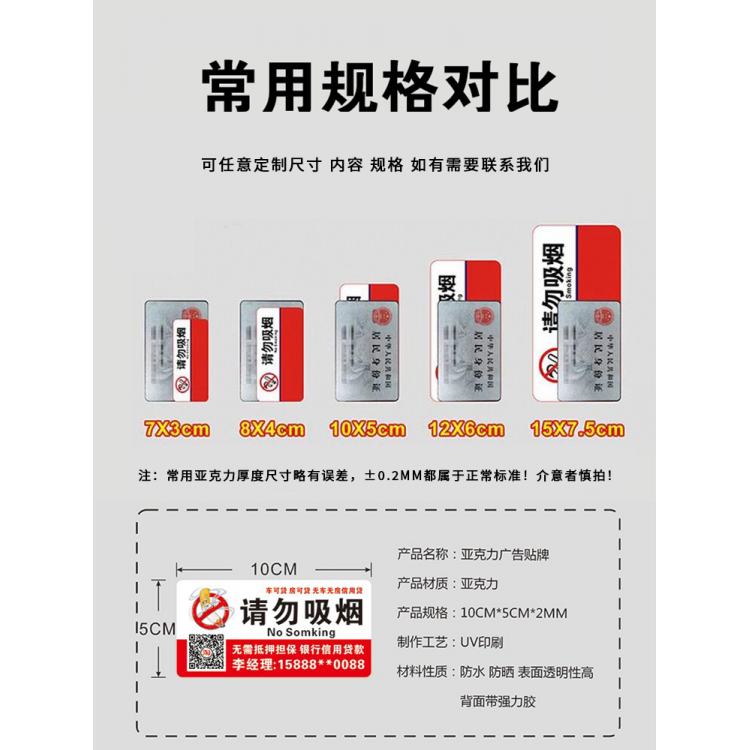 电梯广告贴纸亚克力楼道广告牌请勿吸烟提示牌定做厕所电信宽带移动联通房产中介贷款开锁小广告贴塑料贴定制
