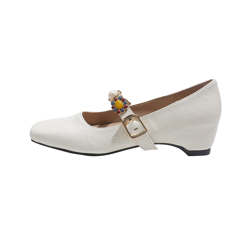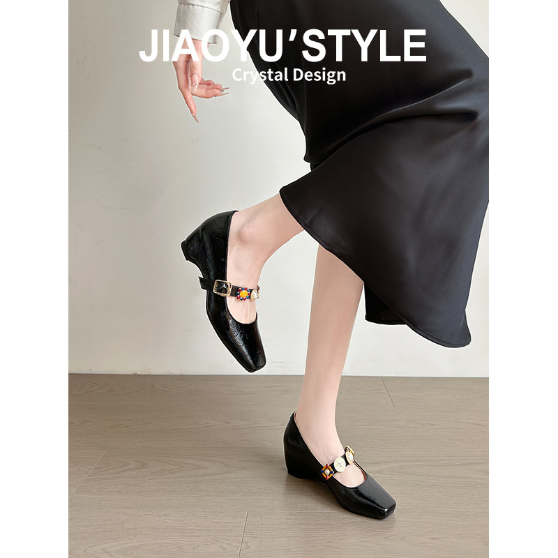 真皮~骄屿法式方头玛丽珍鞋女内增高2026春新款气质浅口通勤单鞋
