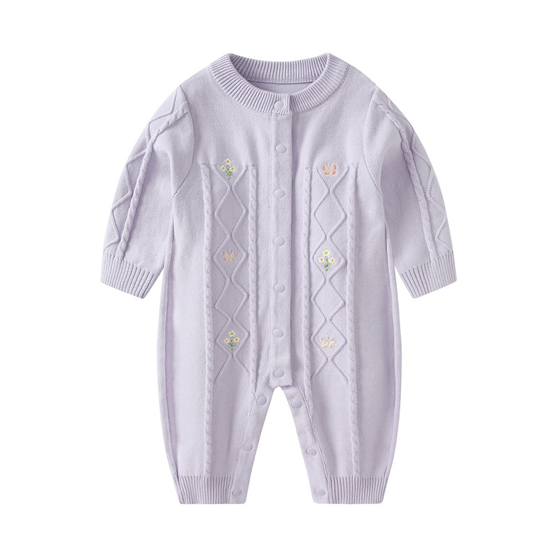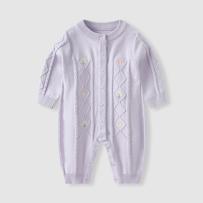 婴儿连体衣春装新款小月龄女宝宝洋气针织哈衣爬爬服春季外穿衣服