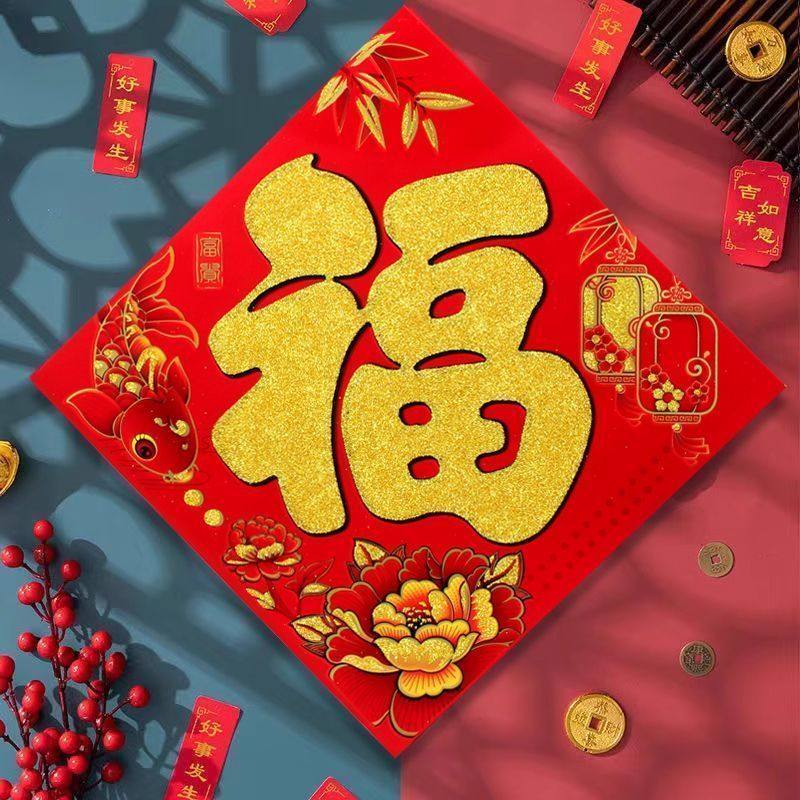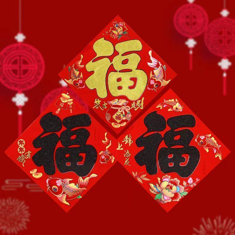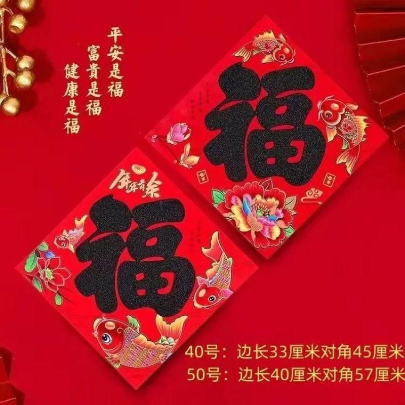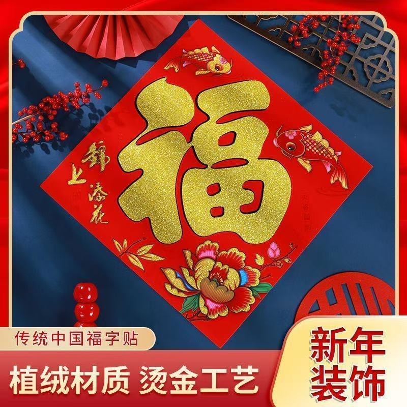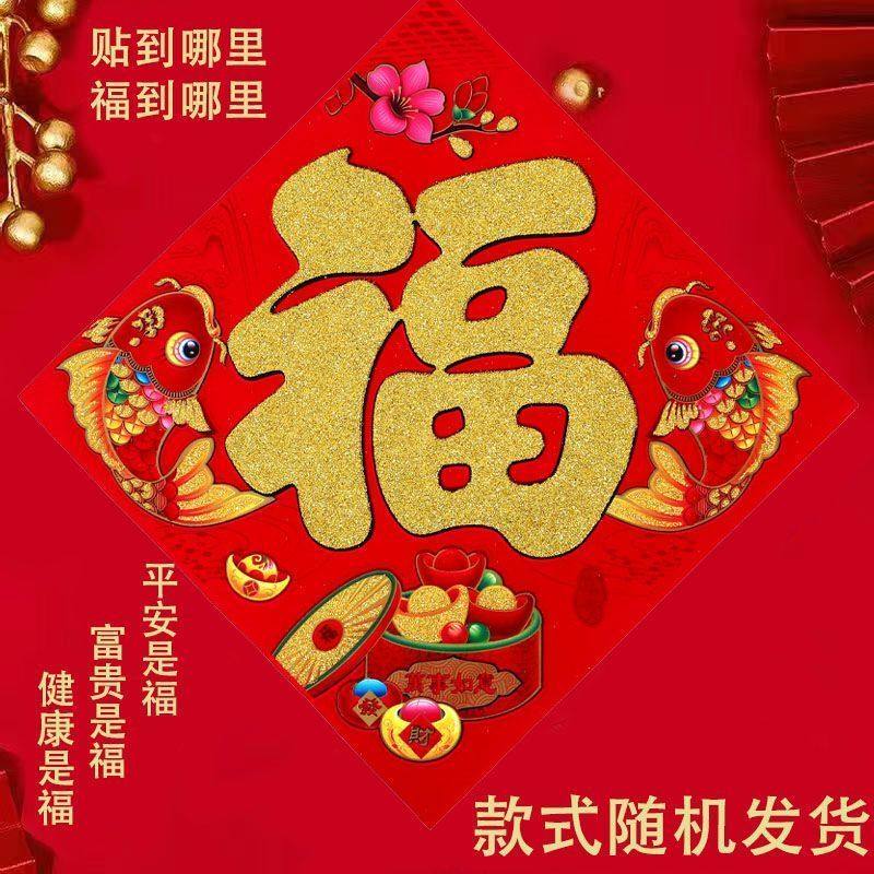新年春节植绒福字入户门加厚金粉黑粉双鱼金鱼福到我家洒金边长