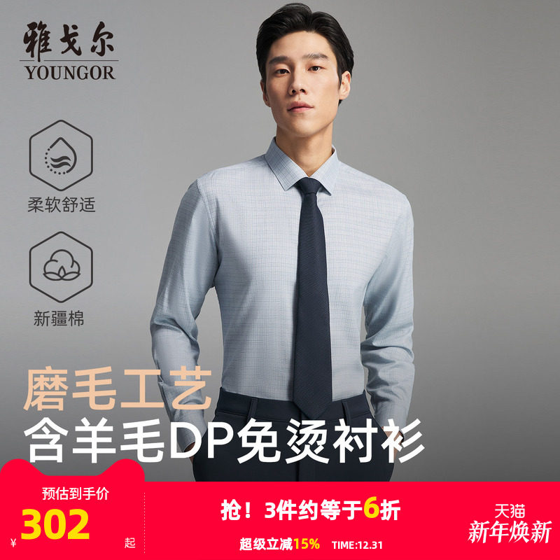 【绵羊毛免烫】雅戈尔官方秋季新品商务休闲通勤DP格纹长袖衬衫男