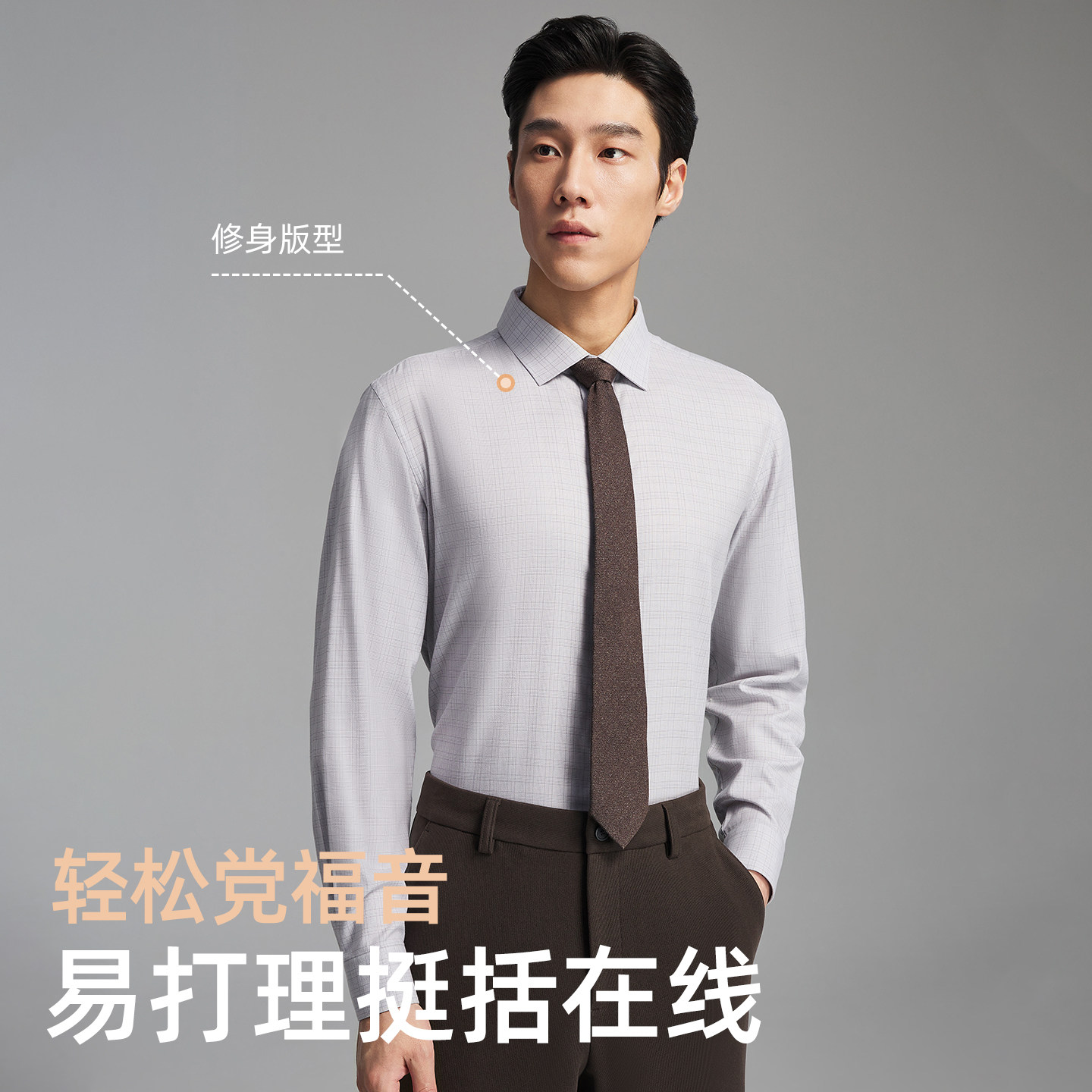 【清仓】杉杉品牌男士长袖衬衫纯色2025春季新款休闲免烫纯棉衬衣