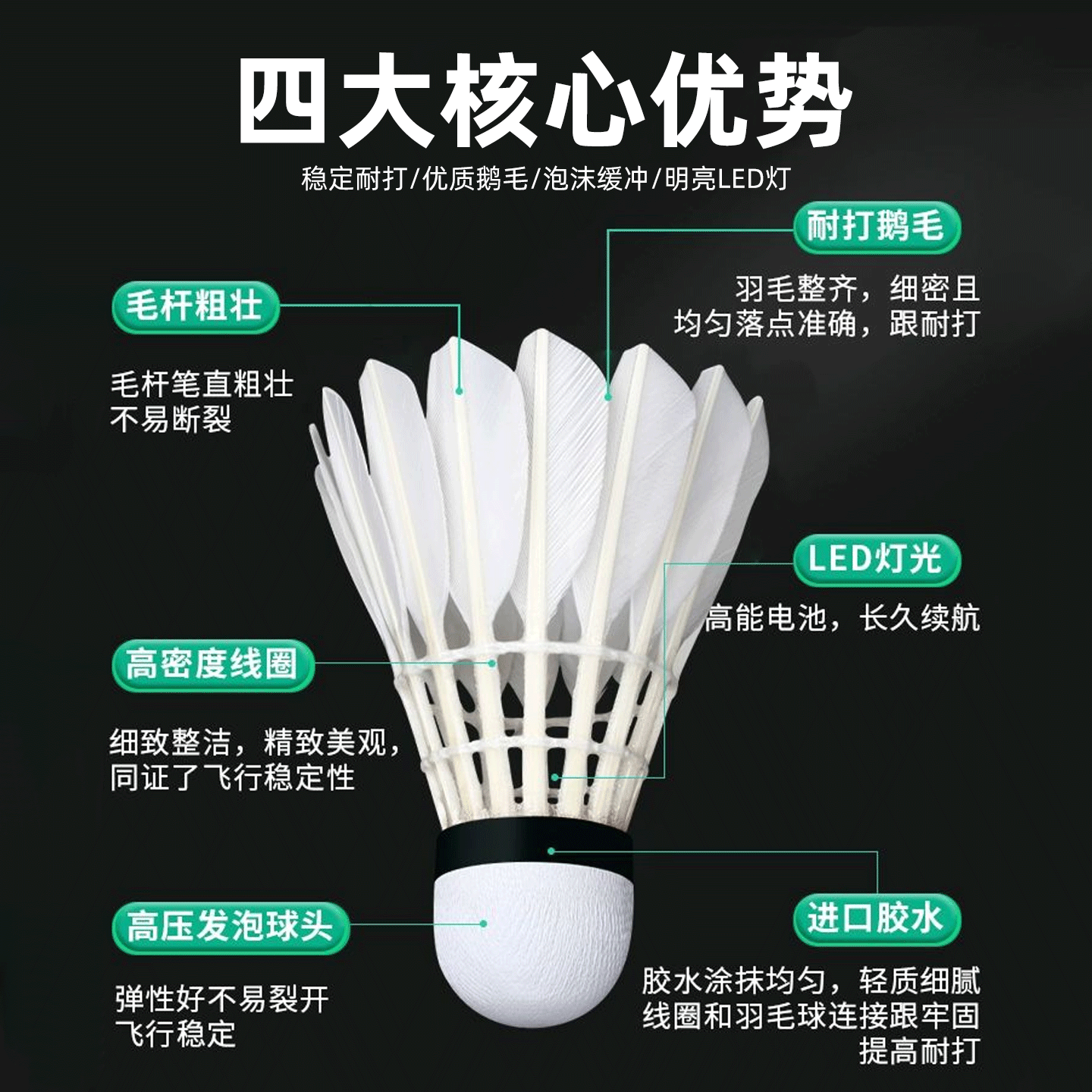 夜光羽毛球室外防风发光耐打尼龙球夜用led荧光专业训练闪光夜打