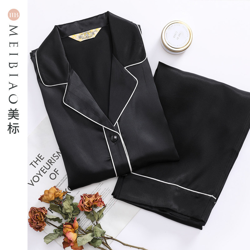 黑白撞色时尚情侣睡衣 采用100%桑蚕丝