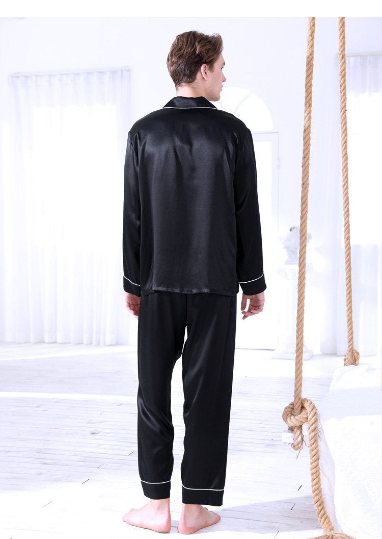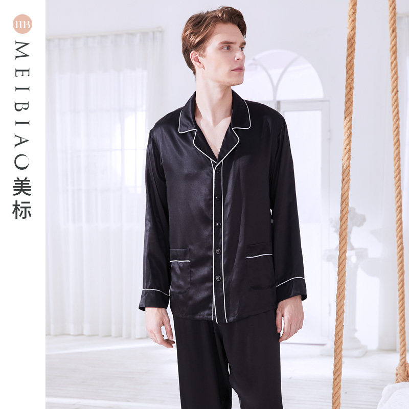 【断码清仓】美标男士春秋真丝睡衣套装丝绸重磅100%桑蚕丝家居服