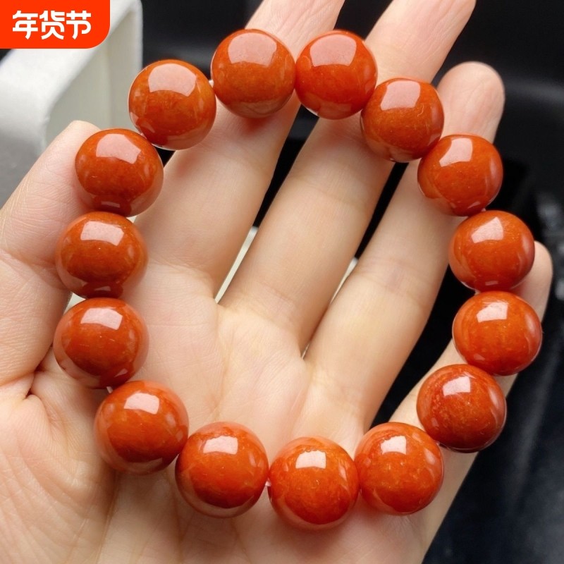 老坑冰种红翡手串男女情侣礼物冰种红翡玉手链圆形玉手镯