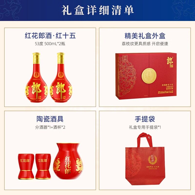 【年货礼盒】郎酒 红花郎红十五53度酱香型白酒 双瓶礼盒装送礼