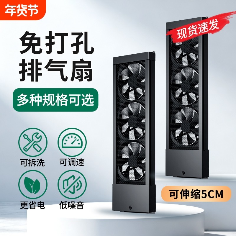 长城免打孔窗户排气扇免安装免开孔窗式换气扇家用排风扇强力静音