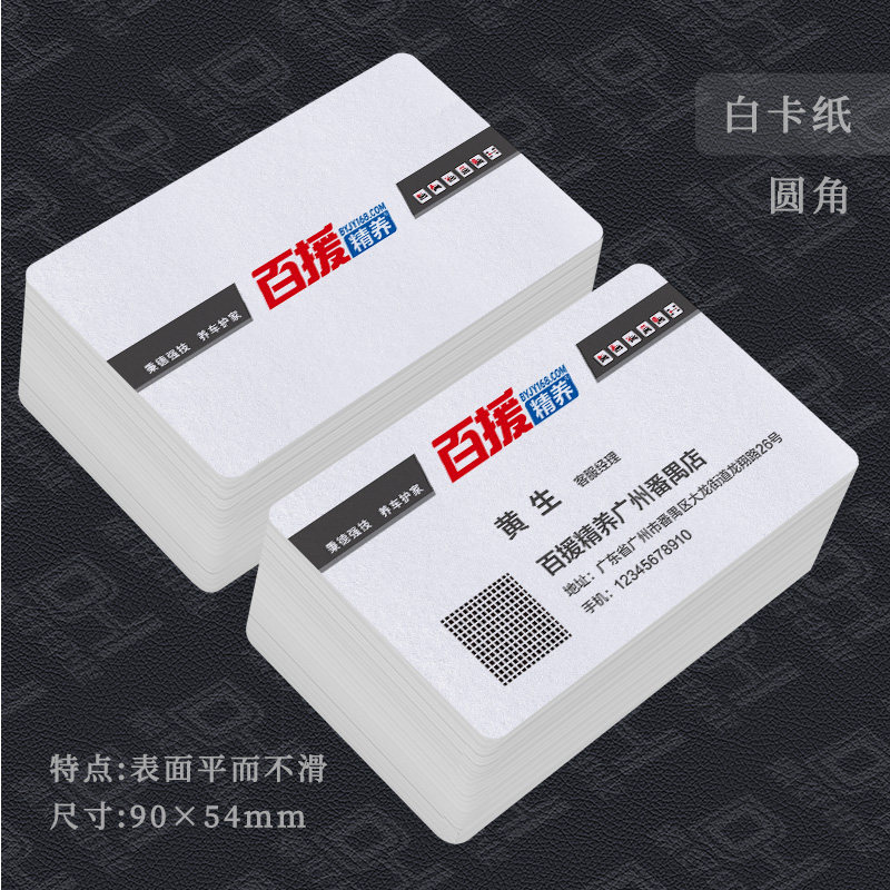 百援精养名片设计制作印刷汽车维修连锁修车保养护特种艺术纸圆角