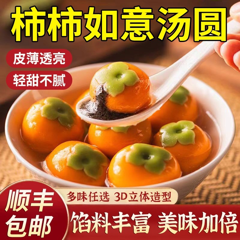 柿柿如意黑芝麻馅汤圆龙井乔迁之喜汤圆订婚宴速冻元宵官方旗舰店