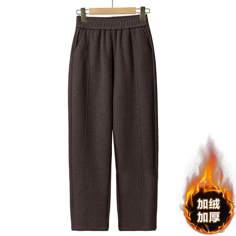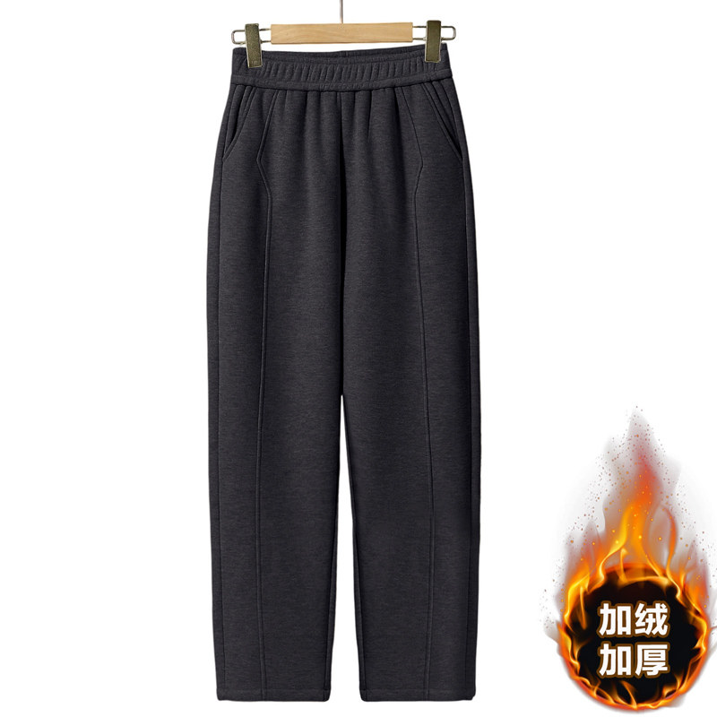 中老年人女裤秋冬加绒长裤外穿妈妈裤子宽松直筒高腰奶奶春秋大码