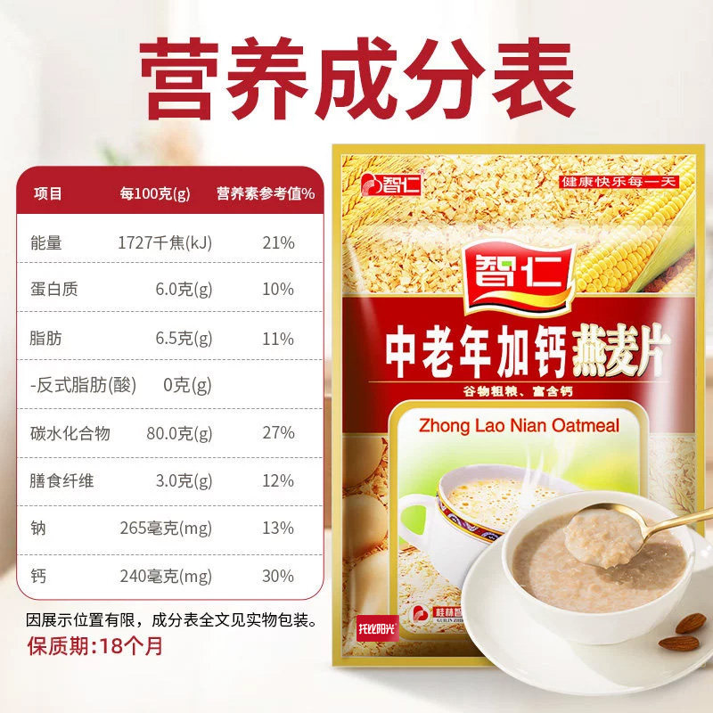智仁燕中老年麦片托比阳光加钙800g营养早餐独立小包即食麦片食品