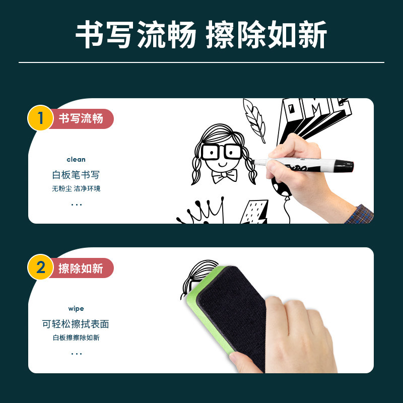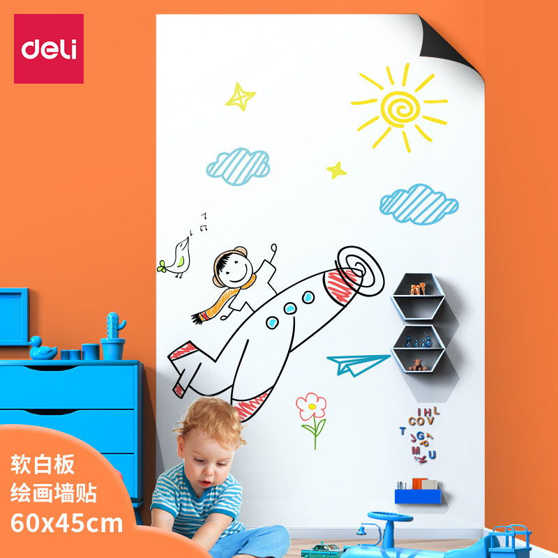 得力可移除软白板墙贴小黑板家用教学磁性可擦可移除儿童涂鸦墙画画板留言板培训写字板家庭墙业绩墙