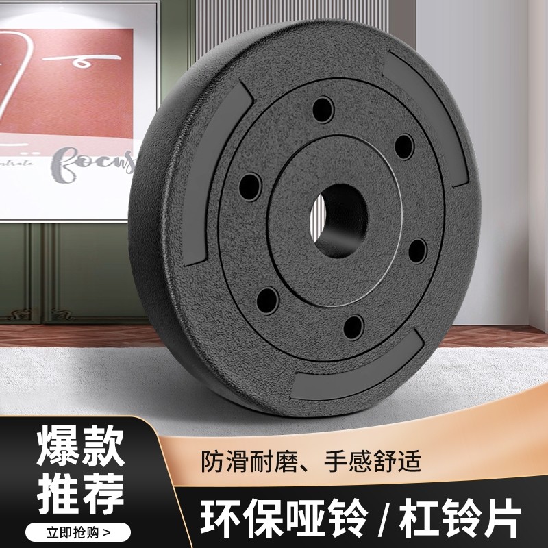 环保哑铃片杠铃片小孔包胶家用健身器材通用男女士举重深蹲练手臂