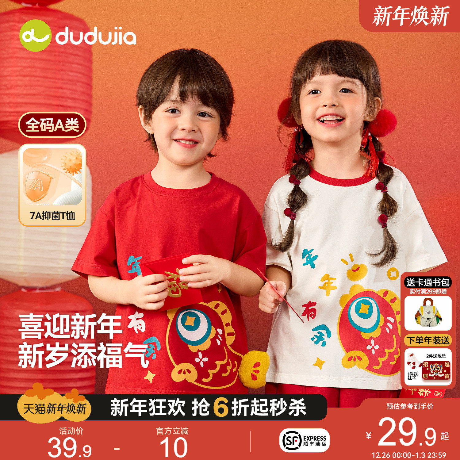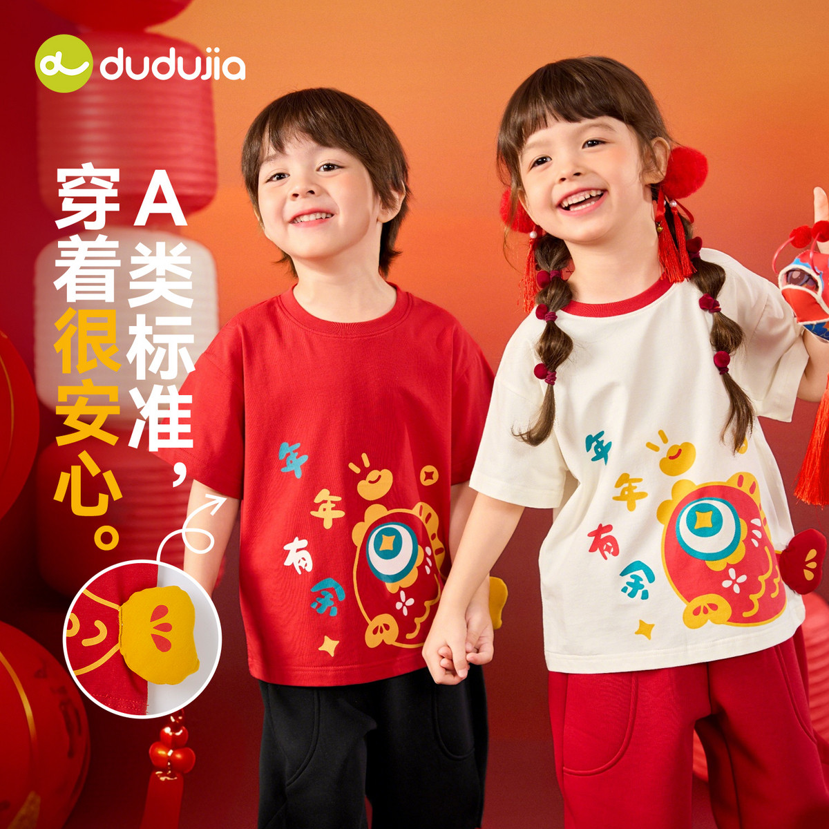 【年年有鱼】嘟嘟家男童短袖T恤拜年服儿童新年唐装女童过年上衣