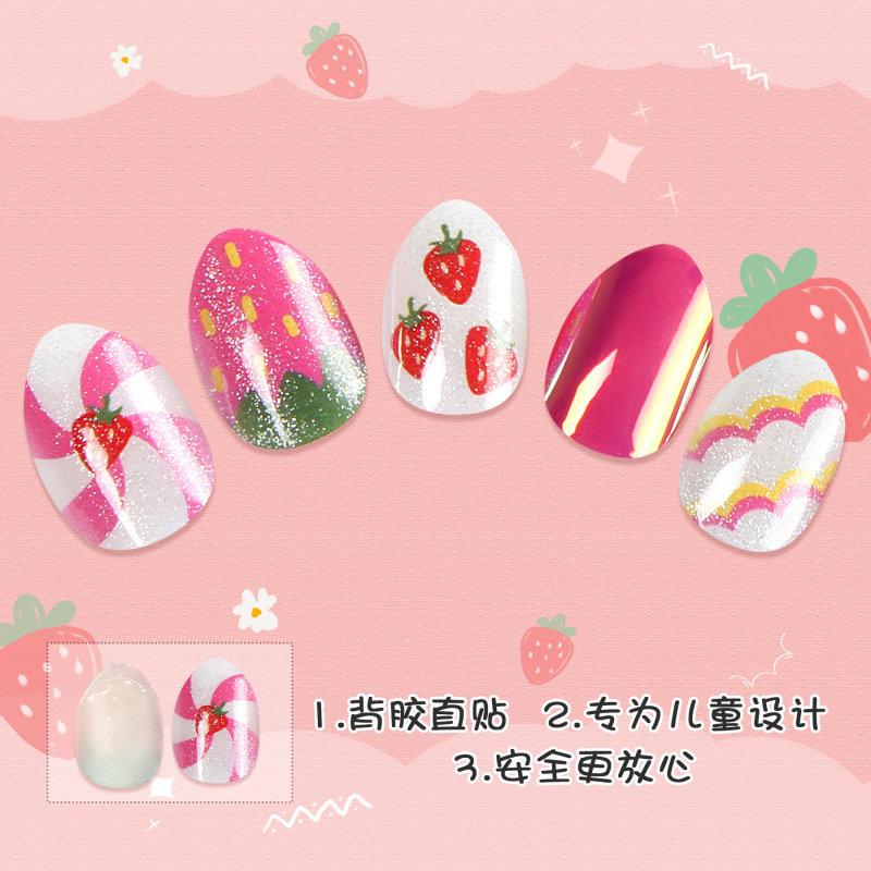 夏季卡通儿童穿戴甲背胶磷光草莓欧美24片现货