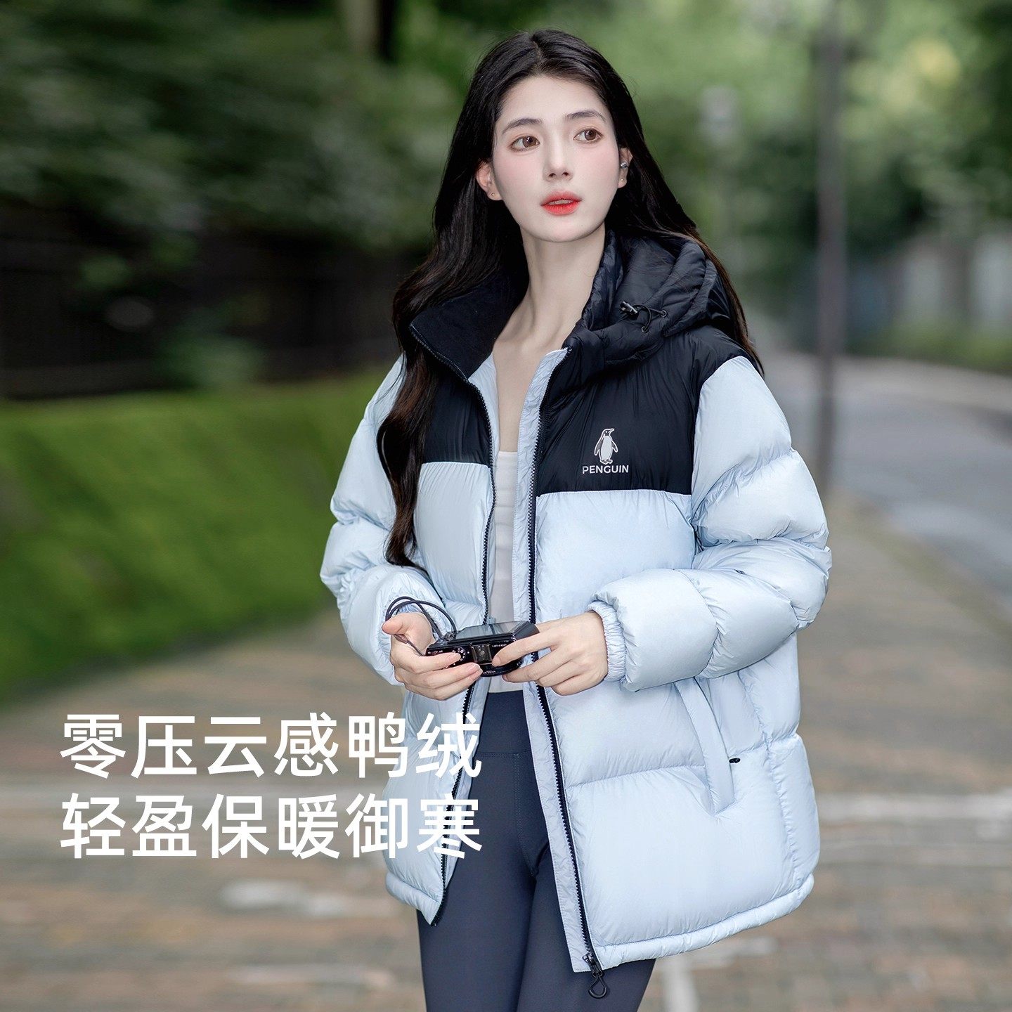 企鹅「雪泡芙」蓝色羽绒服女2026秋冬户外防风加厚保暖短款面包服