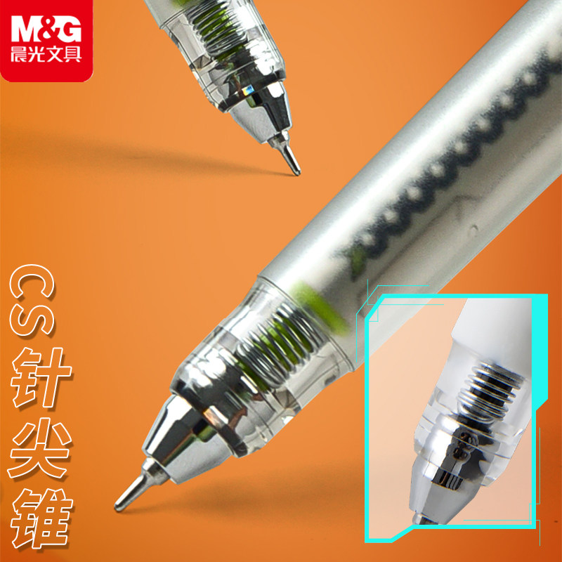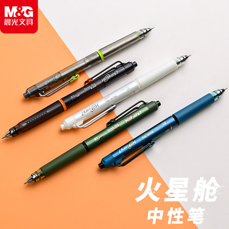 晨光火星舱按动中性笔学生专用考试黑色签字笔0.5CS针尖锥刷题笔