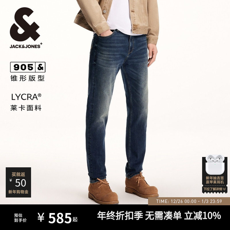 杰克琼斯男装冬季时尚猫须水洗舒适弹力锥形牛仔裤男裤长裤子男款