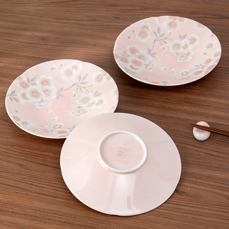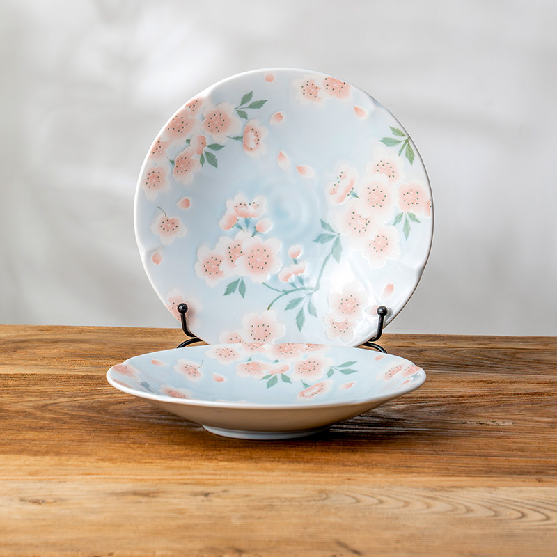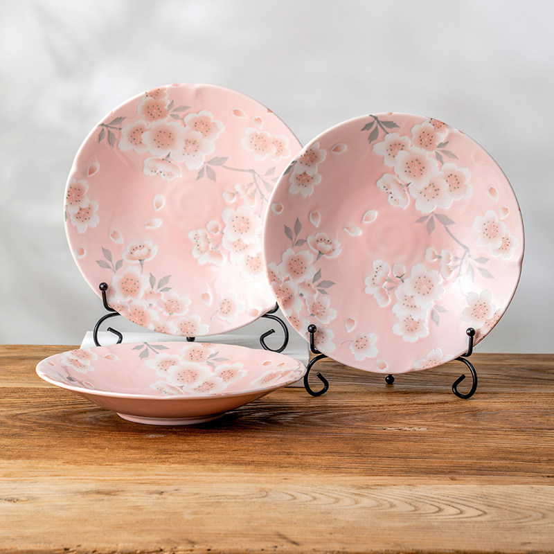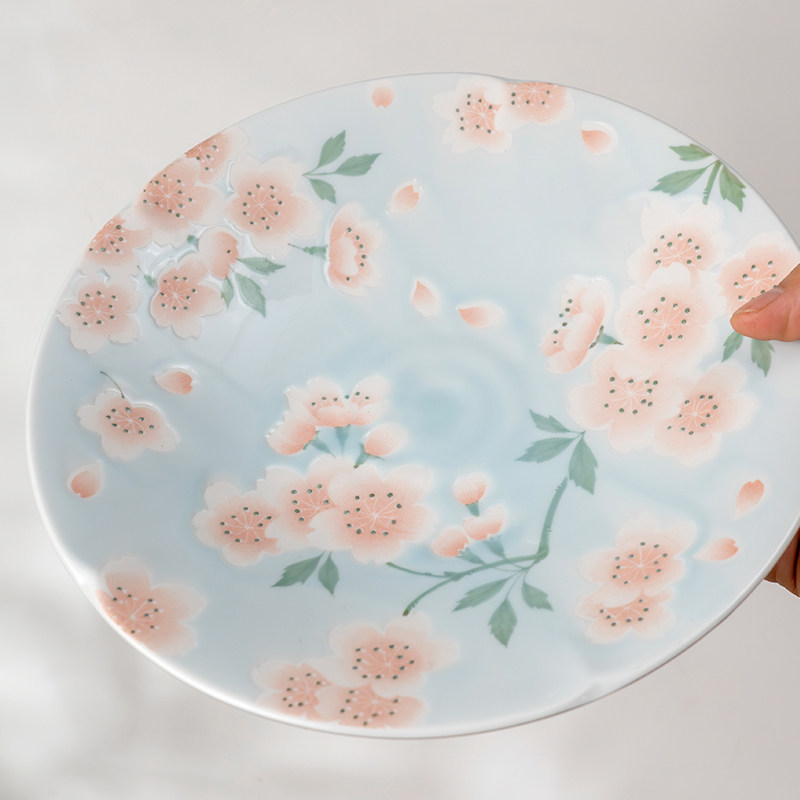 MinoYaki美浓烧 满开樱盘子高级感日本进口浮雕深盘家用8.5英寸