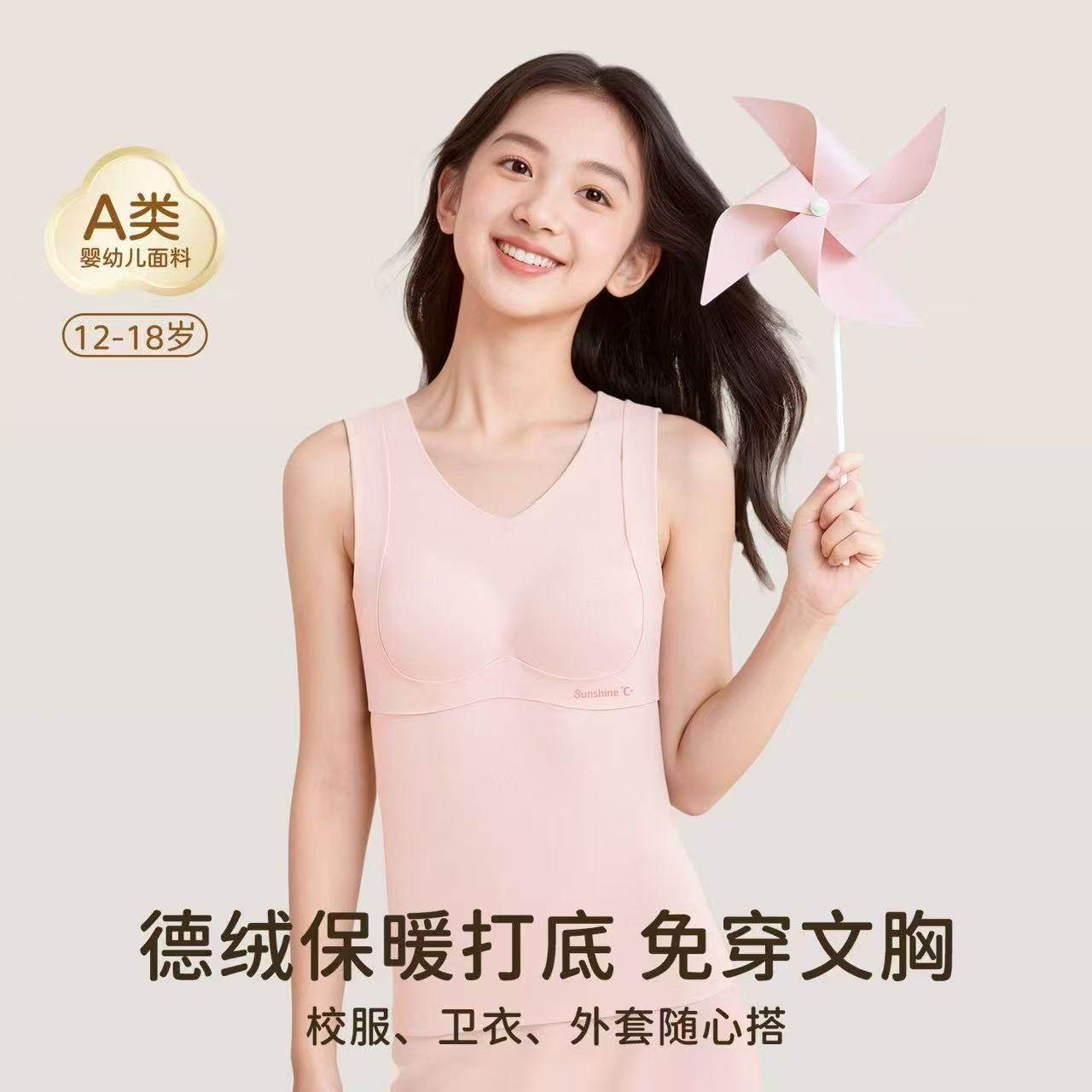 女童发育期内衣2025初中学生冬季内穿小学生保暖德绒蚕丝少女背心