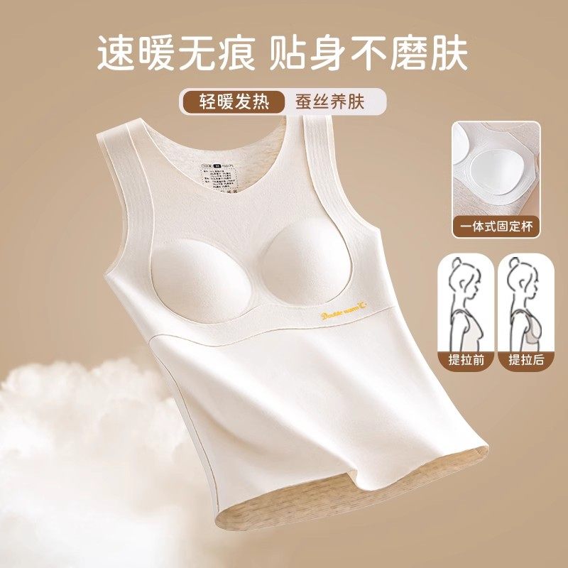张雨绮|曲线主义保暖背心女塑身内搭冬带胸垫磨毛胸罩一体式内衣