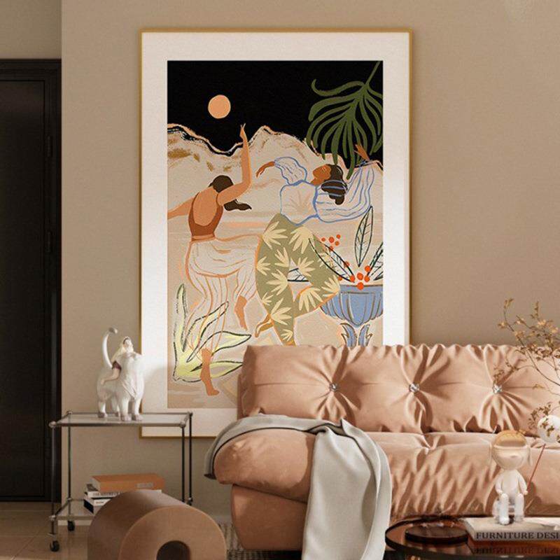 现代北欧风跳舞人物狂欢夜客厅餐厅玄关装饰画卧室壁画竖版挂画