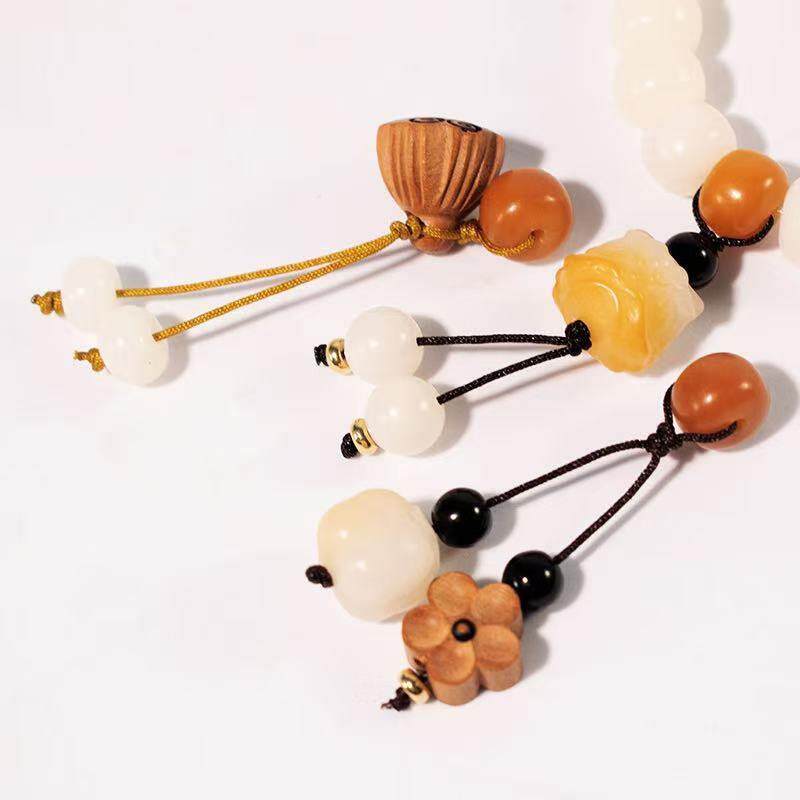 天然菩提隔珠桃木梅花莲蓬醒狮流苏挂坠无患子手串diy小提溜配饰