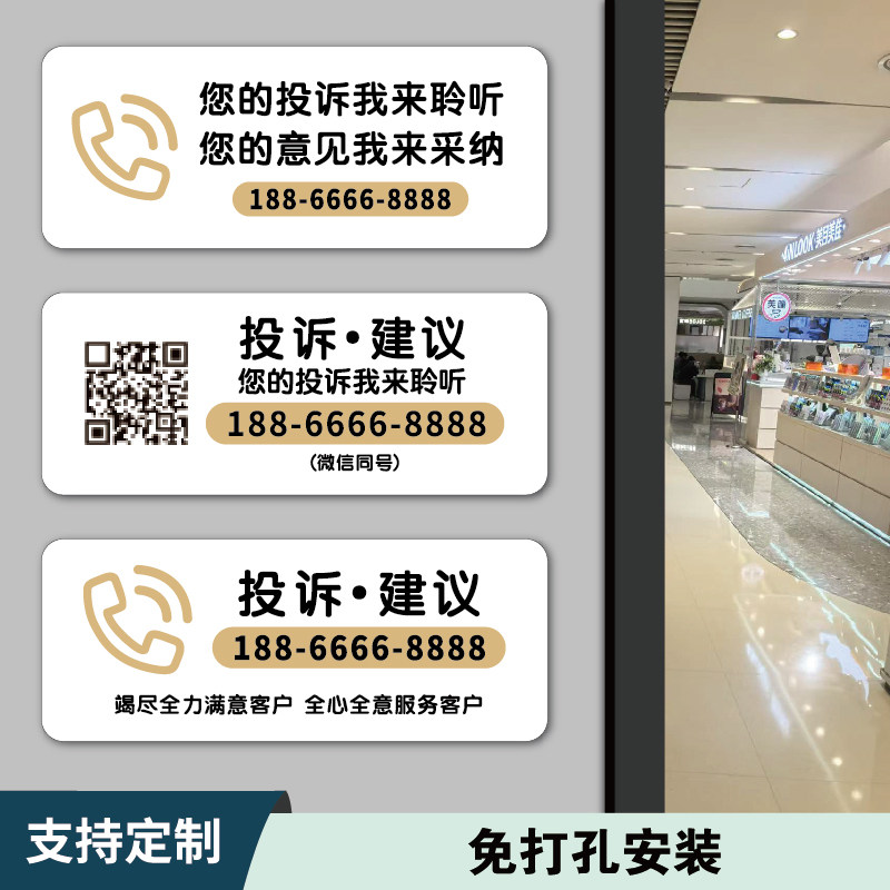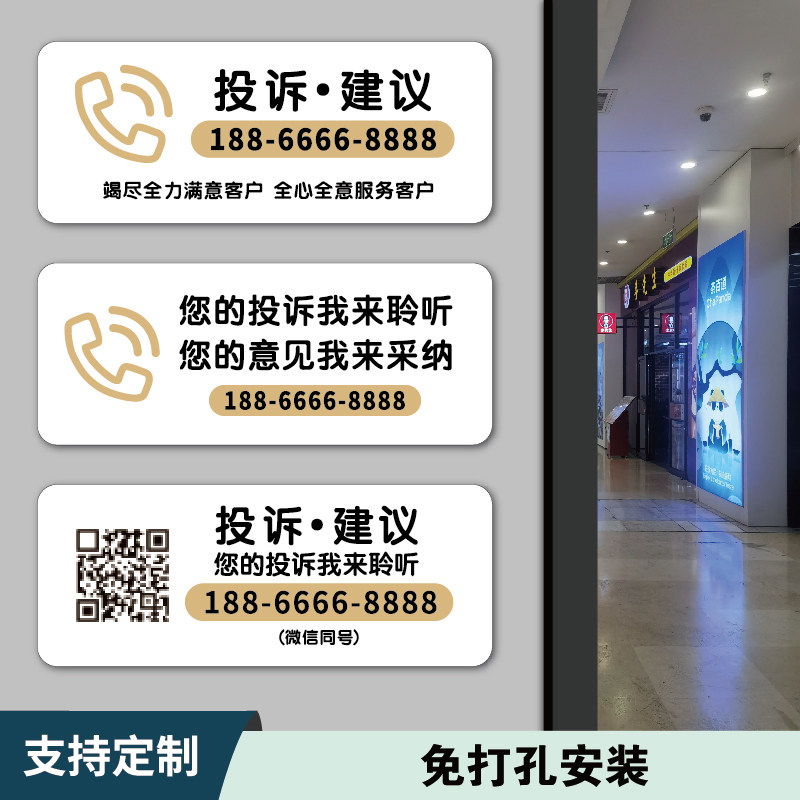 投诉电话提示牌酒店宾馆超市商场投诉建议牌服务监督热线电话指示牌亚克力墙贴娱乐场所客诉牌标识贴纸牌子