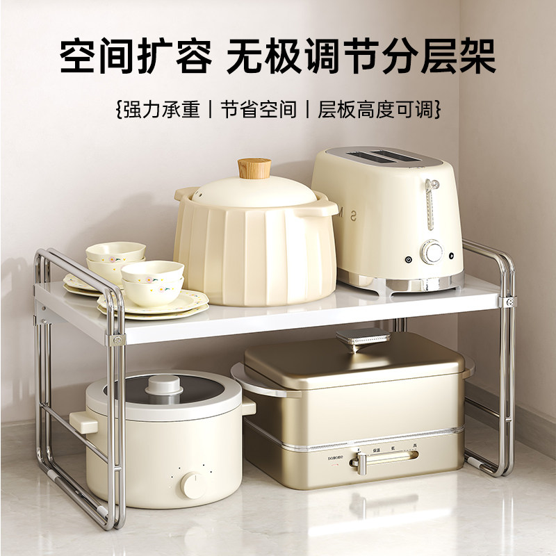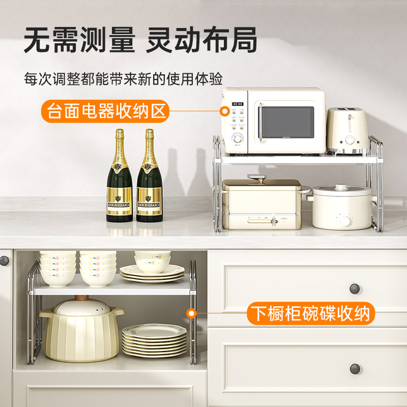 调桌面置物架台面分层架橱柜隔板收纳子长方形伸缩灶台承重可调节