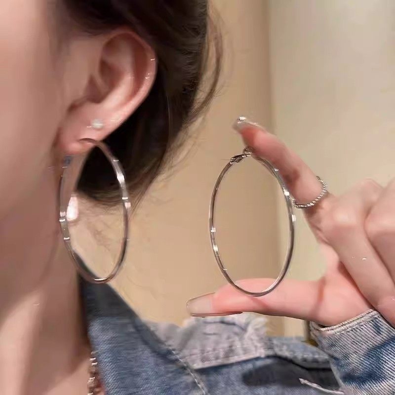 欧美法式夸张大圈圈耳环高级感耳圈银色耳饰2025新款爆款耳扣耳钉