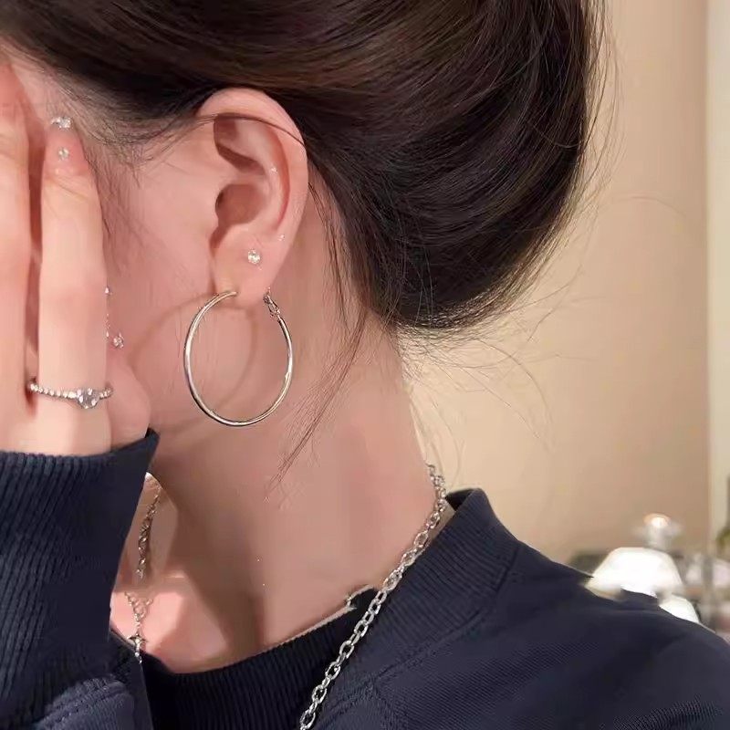 银色简约高级感素圈耳环女2025新款耳圈气质耳饰轻奢耳钉圈圈耳扣