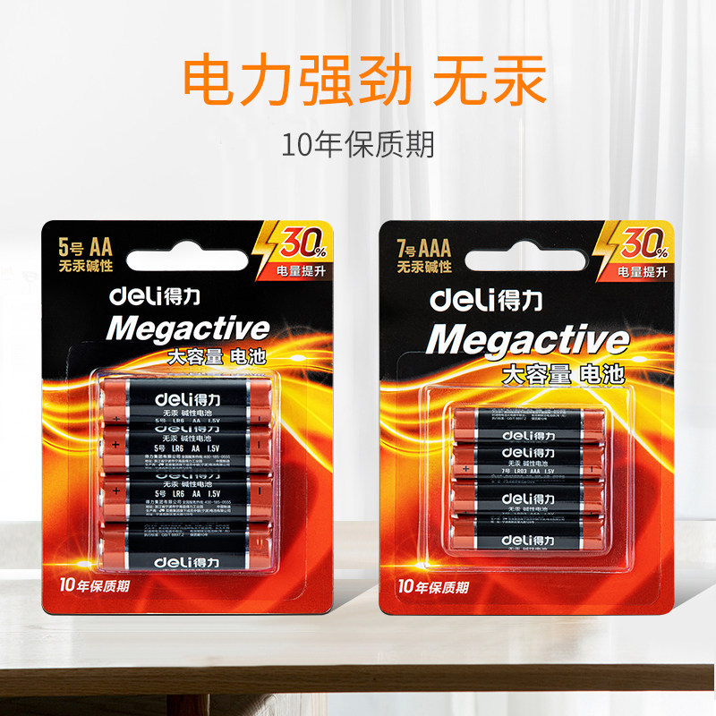 得力5号干电池7号20粒碱性1.5V空调电视遥控器挂钟表闹钟专用五号七号aa电池批发键盘鼠标话筒儿童小玩具