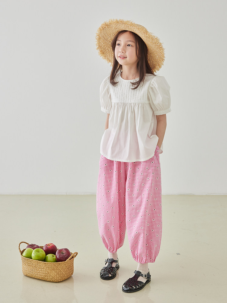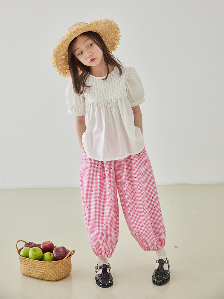 棵初儿童24夏季薄款物理防蚊裤女童格子印花休闲裤宽松清新灯笼裤