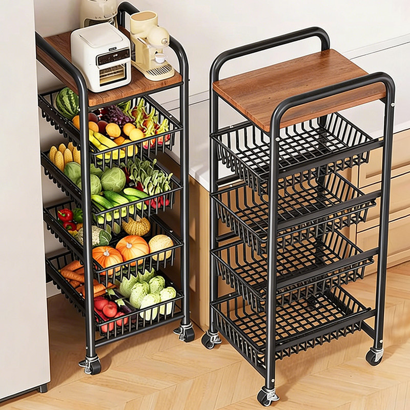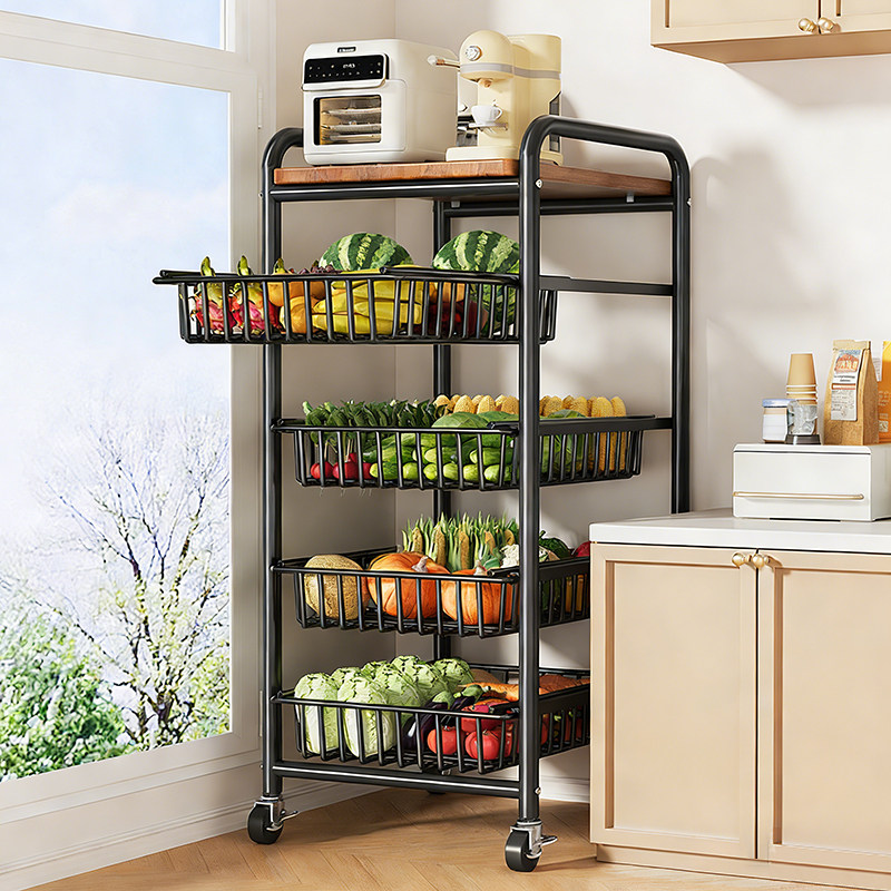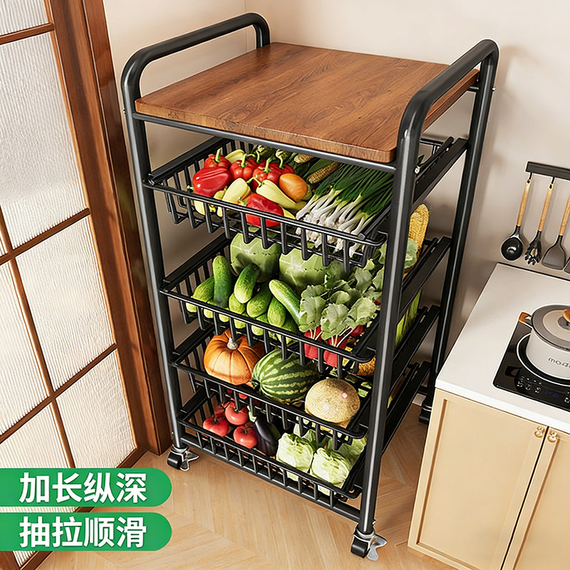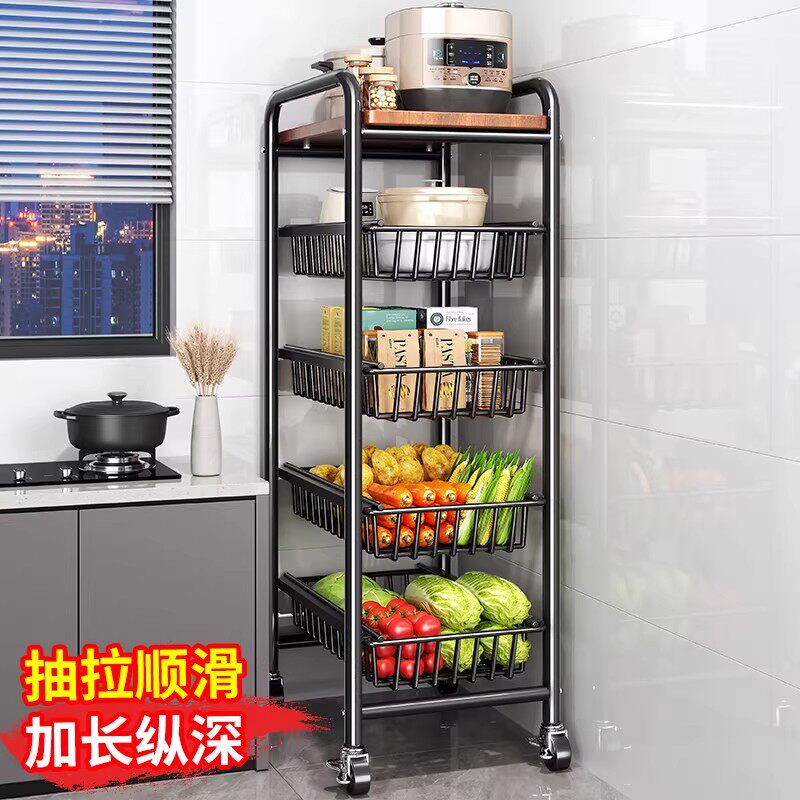 厨房置物架落地多功能放果蔬菜篮子可抽拉式夹缝多层葱姜蒜收纳架