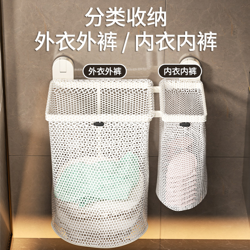 吸盘脏衣篓家用壁挂脏衣篮卫生间可折叠大容量脏衣服收纳筐洗衣袋