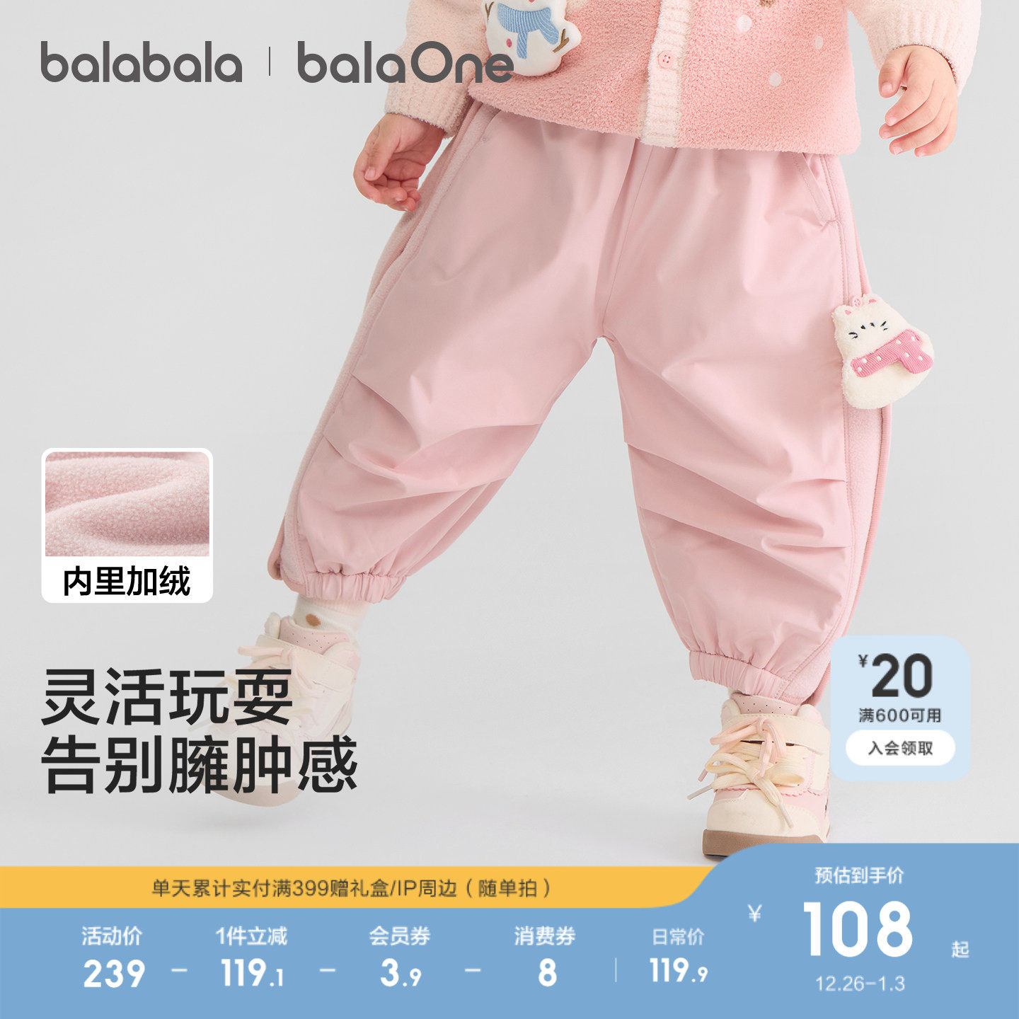 巴拉巴拉童装宝宝长裤加绒保暖伞兵裤男女童2025新款冬装儿童裤子