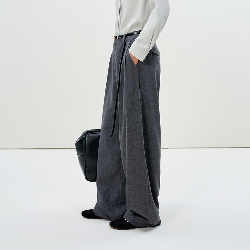 LESS春休闲垂坠感慵懒通勤阔腿裤通勤时尚西装长裤女2P2E20640