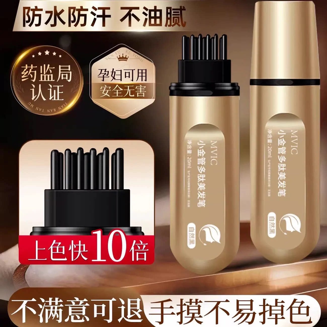 小金管多肽美发笔遮盖白发神器不掉色植物新款液体染发植萃美发棒