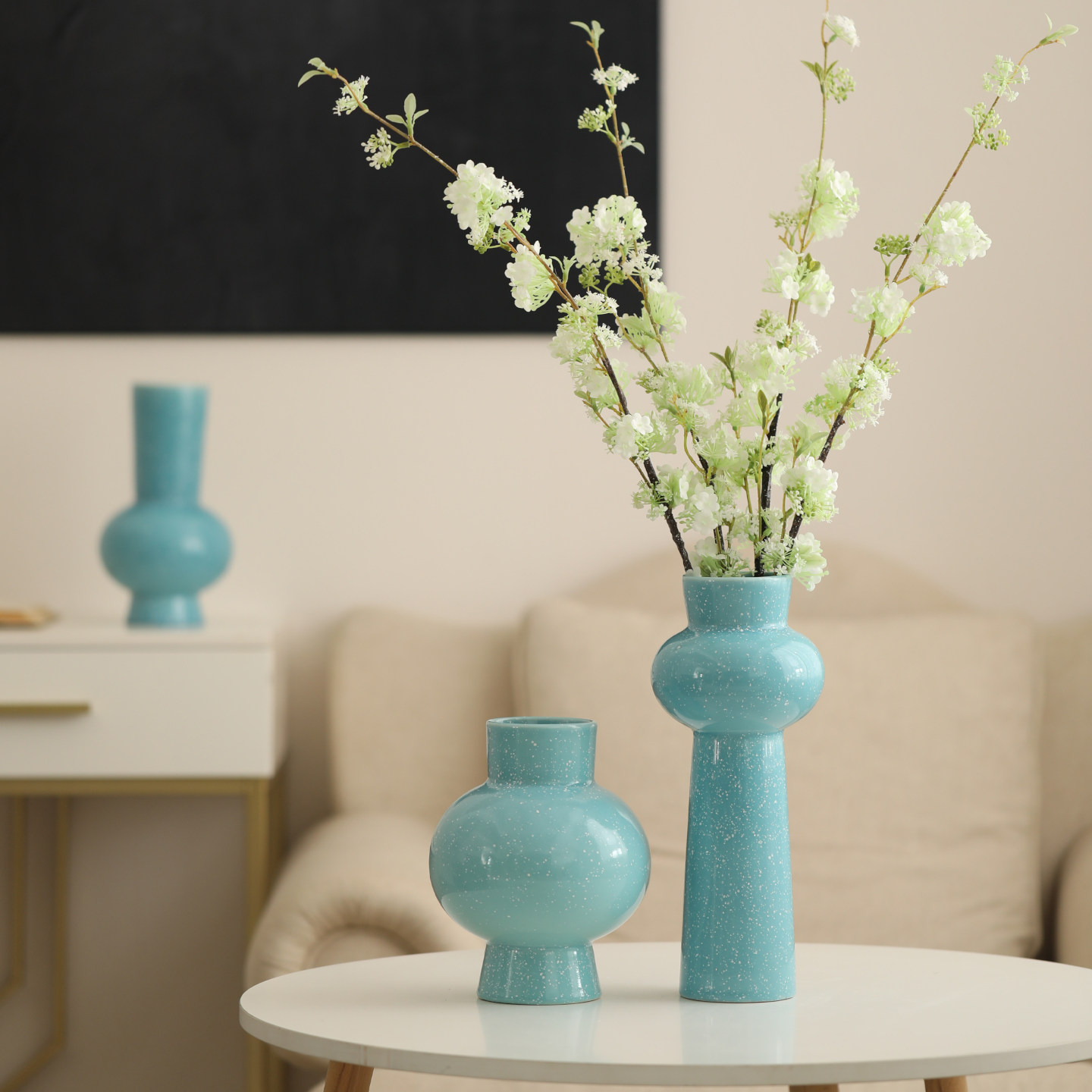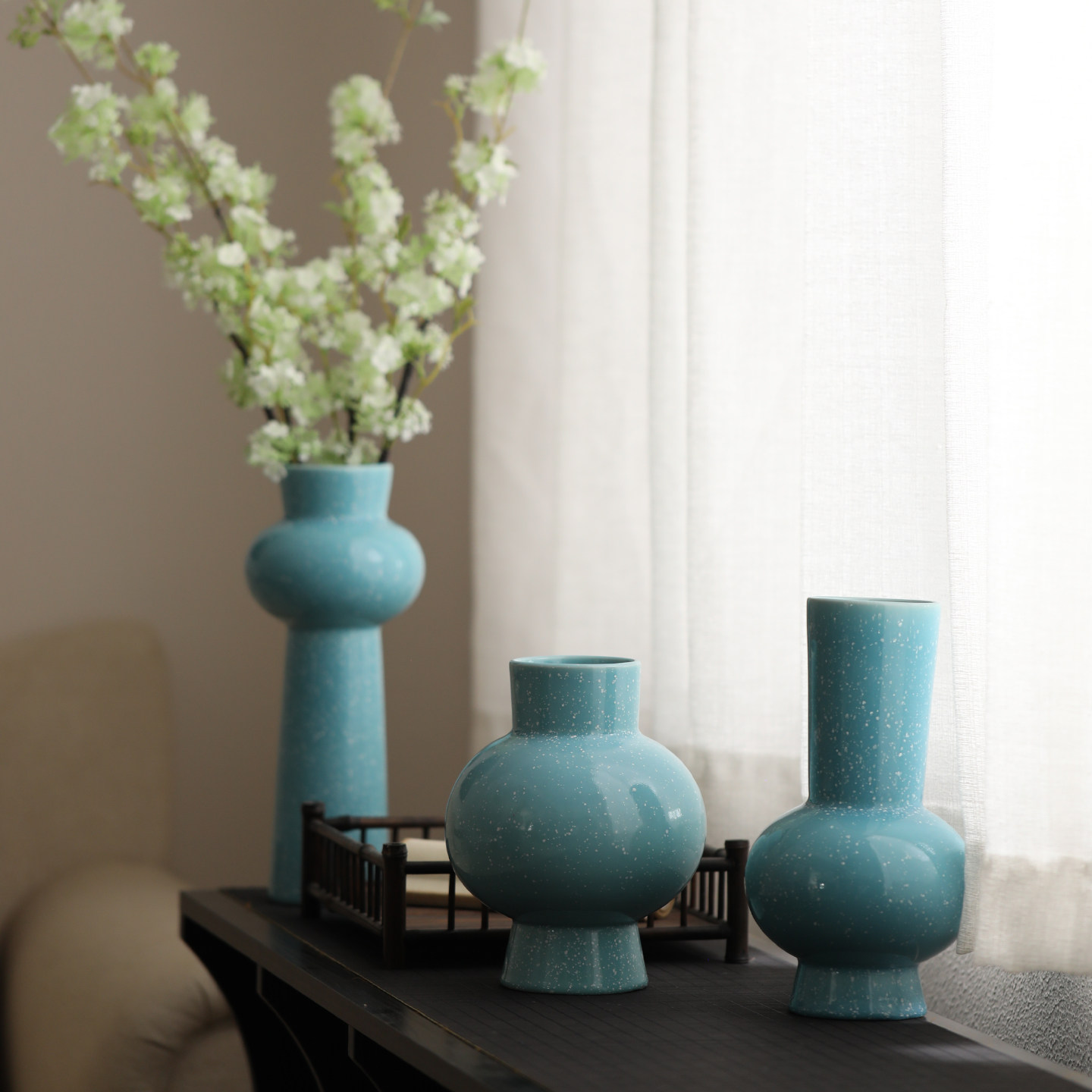 景德镇侘寂风陶瓷花瓶展示柜中式复古蓝色花器民宿酒店插干花摆件