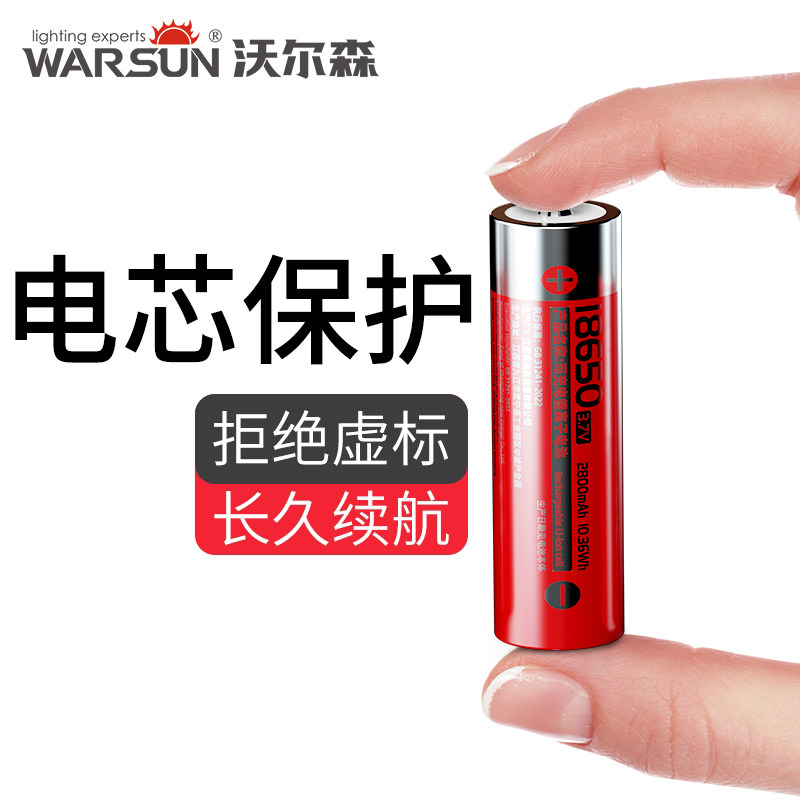 沃尔森18650锂电池大容量强光手电筒可充电器动力电芯3.7V/4.2V
