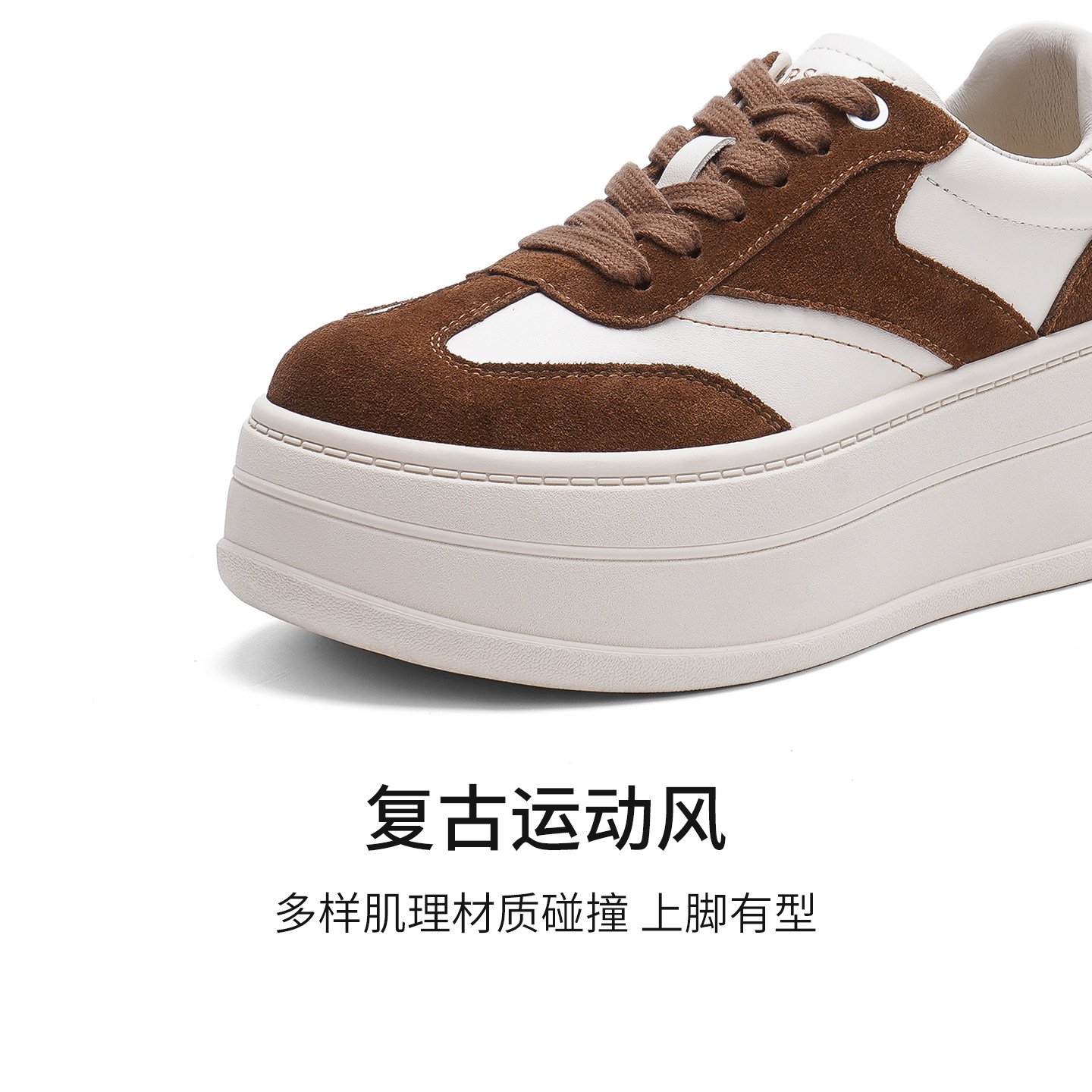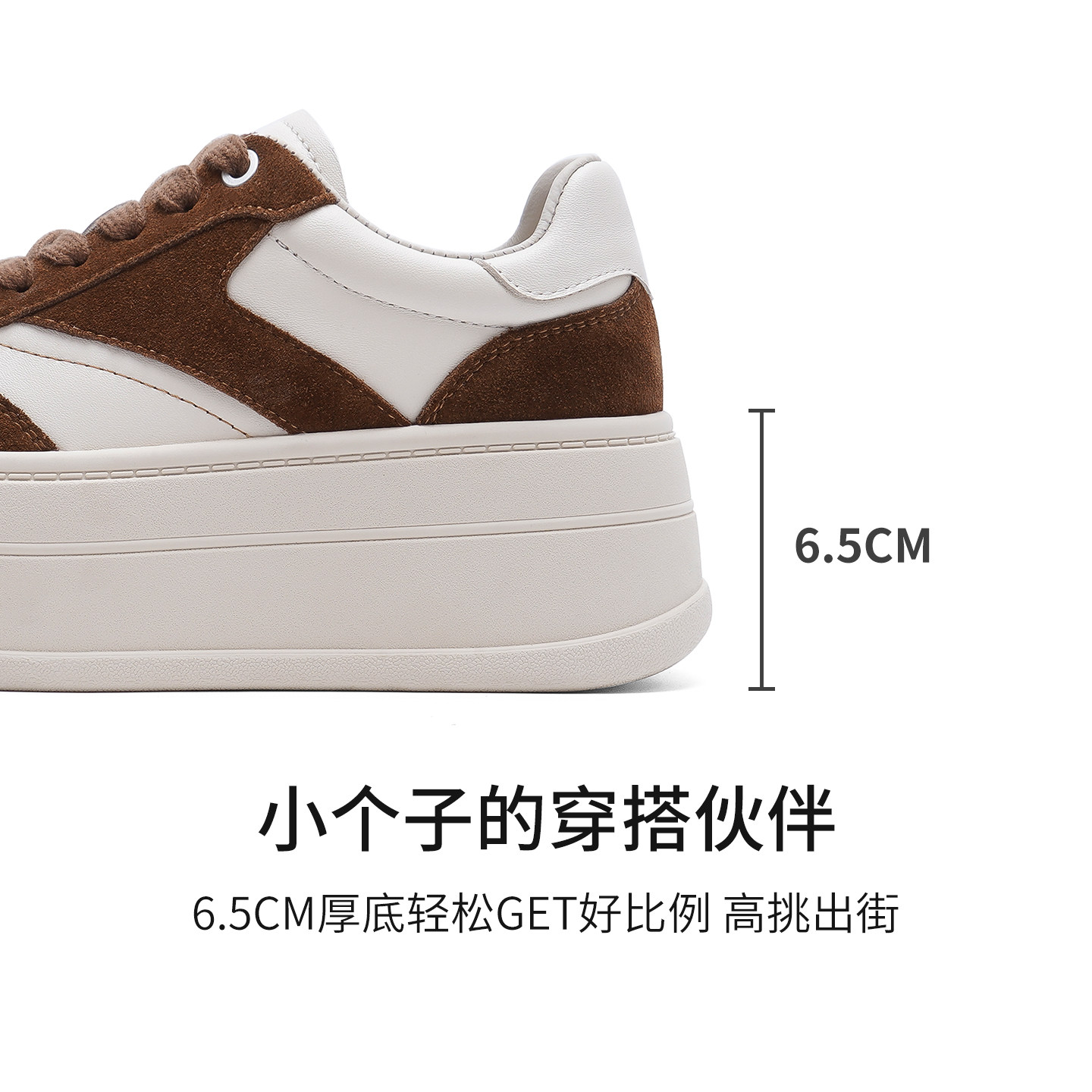 哈森复古风圆头平跟撞色休闲鞋女厚底增高舒适时尚板鞋HWCA250113