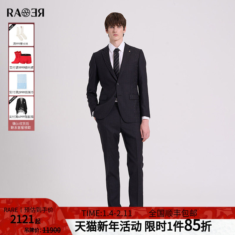 RARE威雅男装秋冬新款深灰底羊毛咖色竖向点提花拼接西裤西服套装