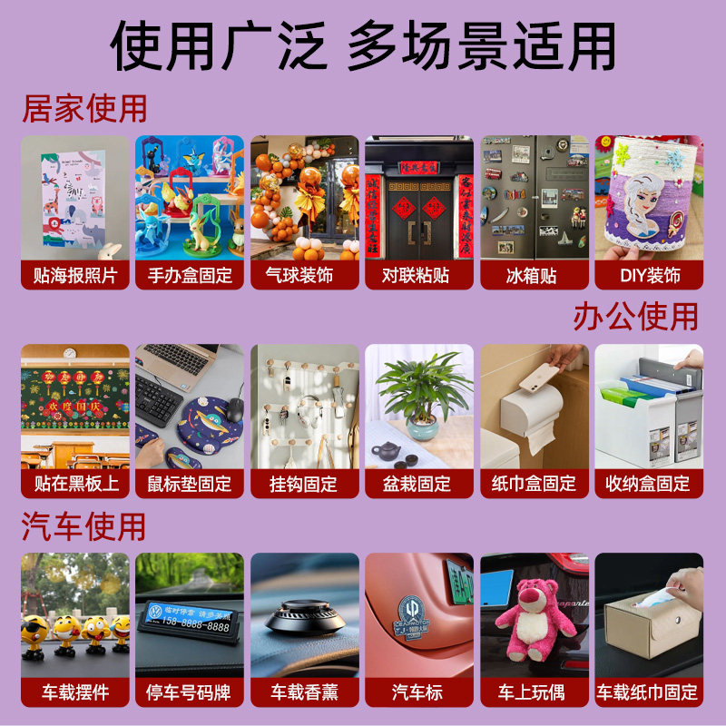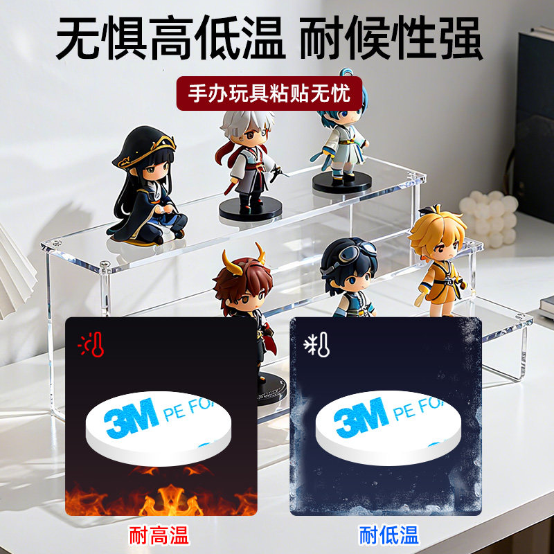 3M点胶高粘度不留痕强力固定卡通手办二次元盲盒动漫人偶模型不伤墙免钉易撕耐高低温双面泡棉无痕自粘点胶贴