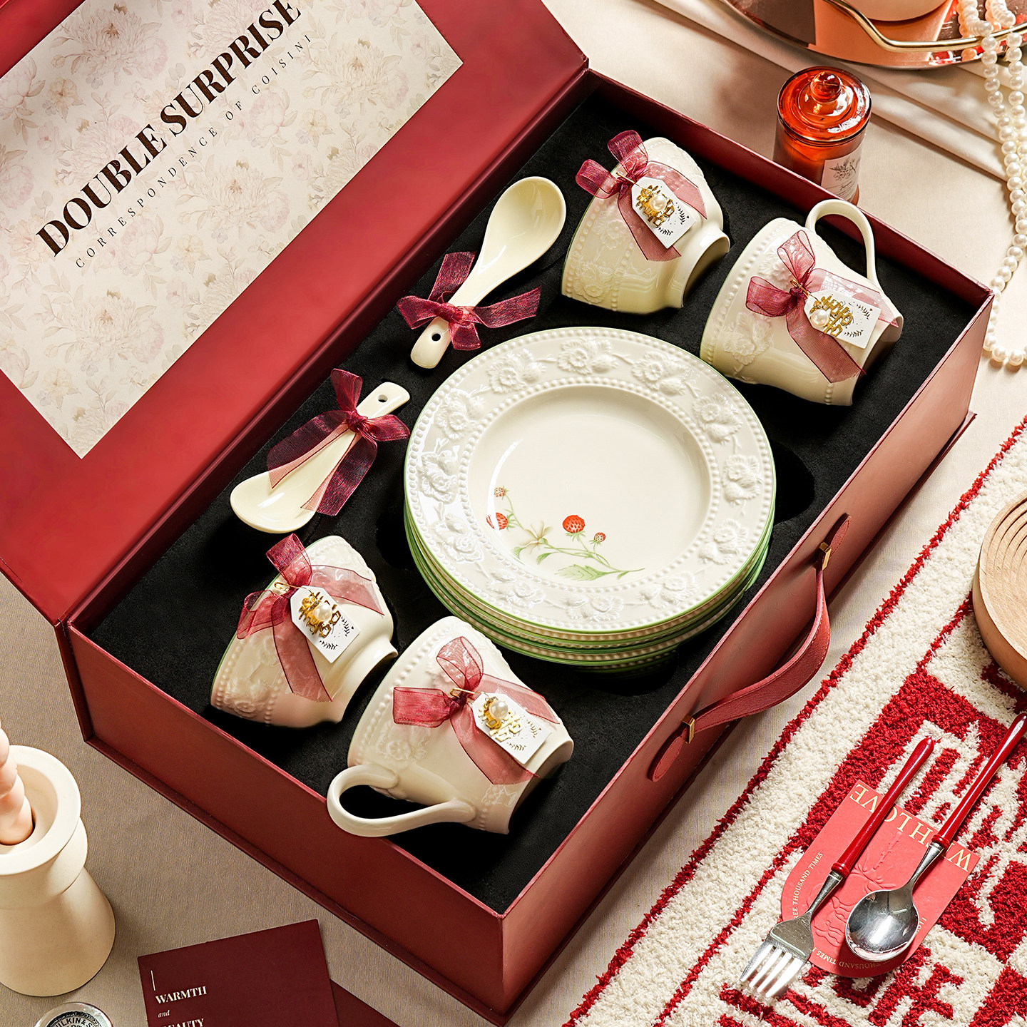 高档碗碟餐具陶瓷新婚礼物送新娘红色碗盘筷套装乔迁新居结婚礼盒
