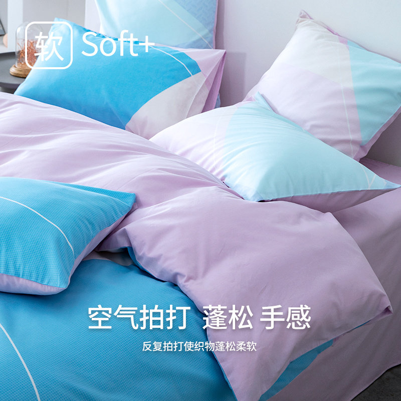A类水洗棉双层纱四件套被罩非全棉纯棉床单人学生宿舍被套三件套