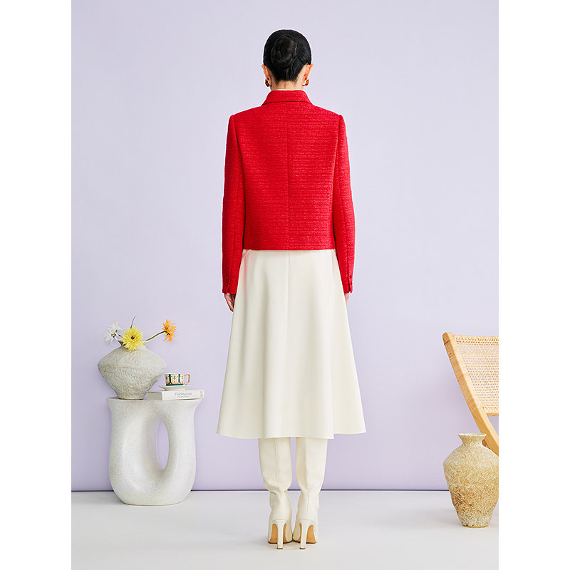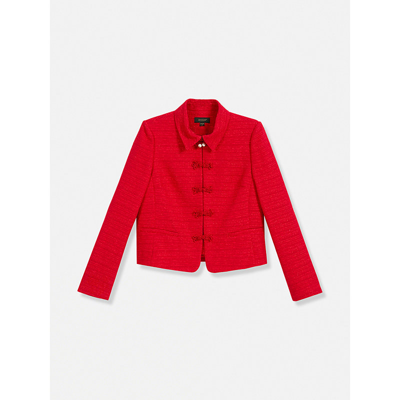 YINER音儿2026春季新款樱桃红新中式盘扣亮丝小香风花纱短外套