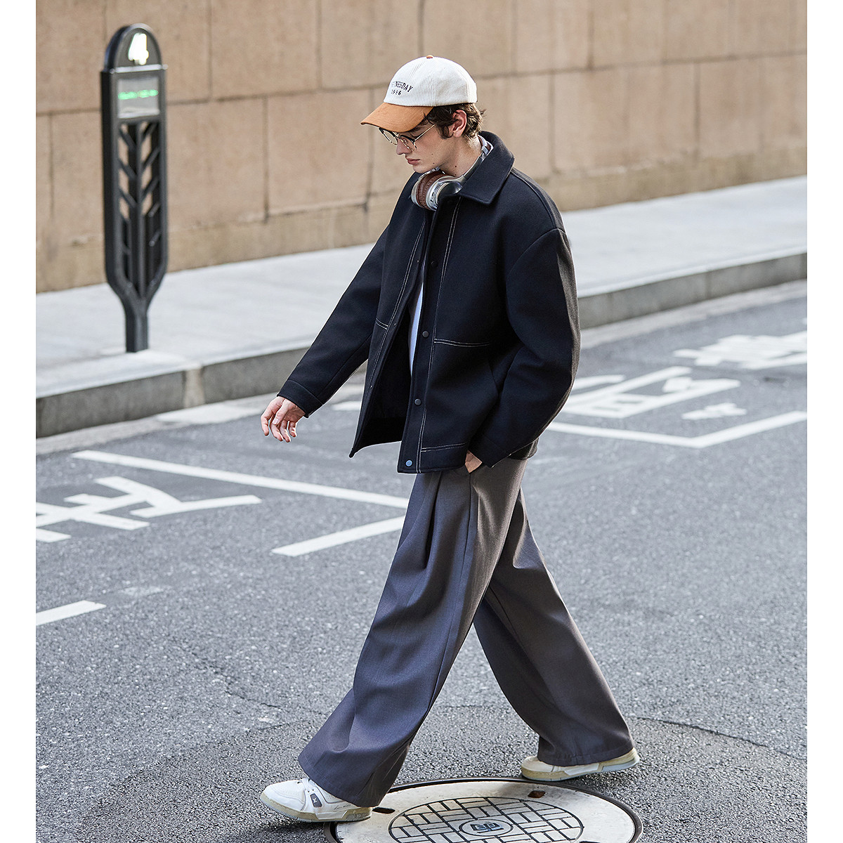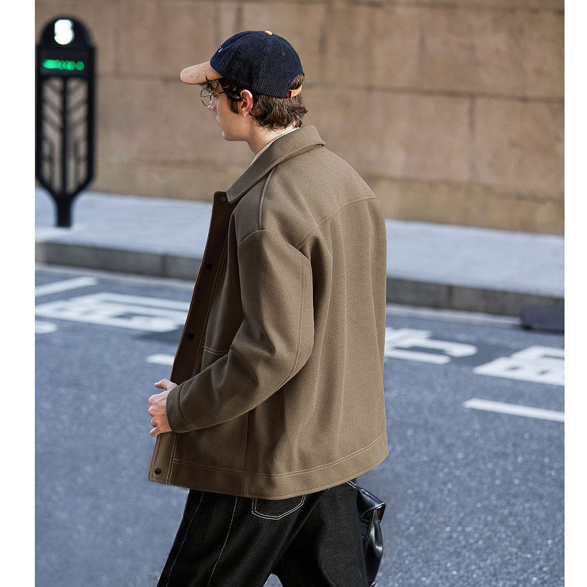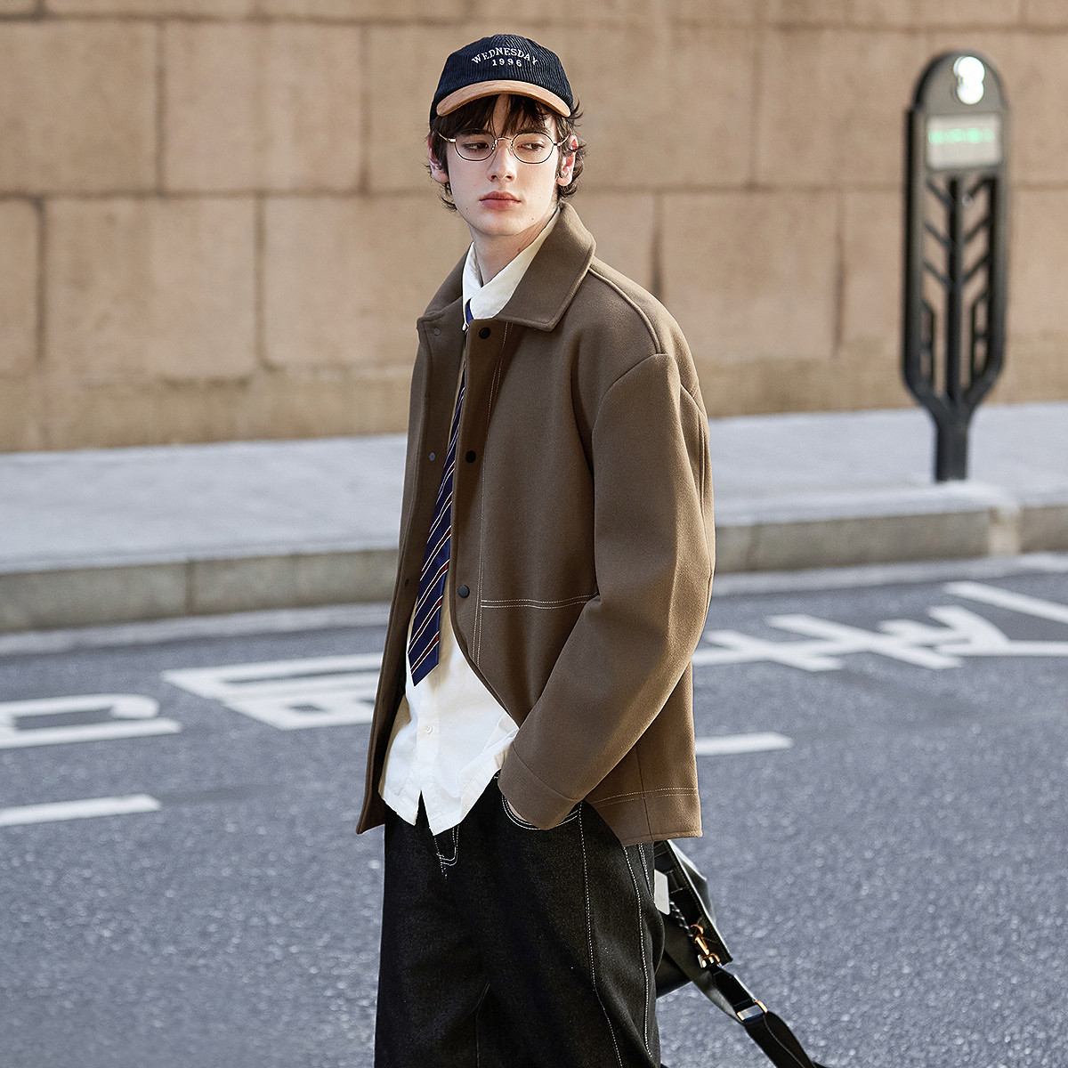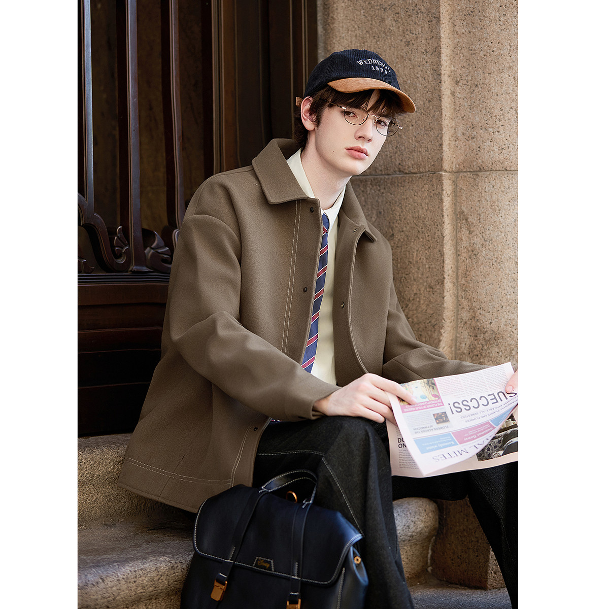 唐狮秋冬季男毛呢外套短款翻领车明线净色帅气德美拉时尚保暖TM