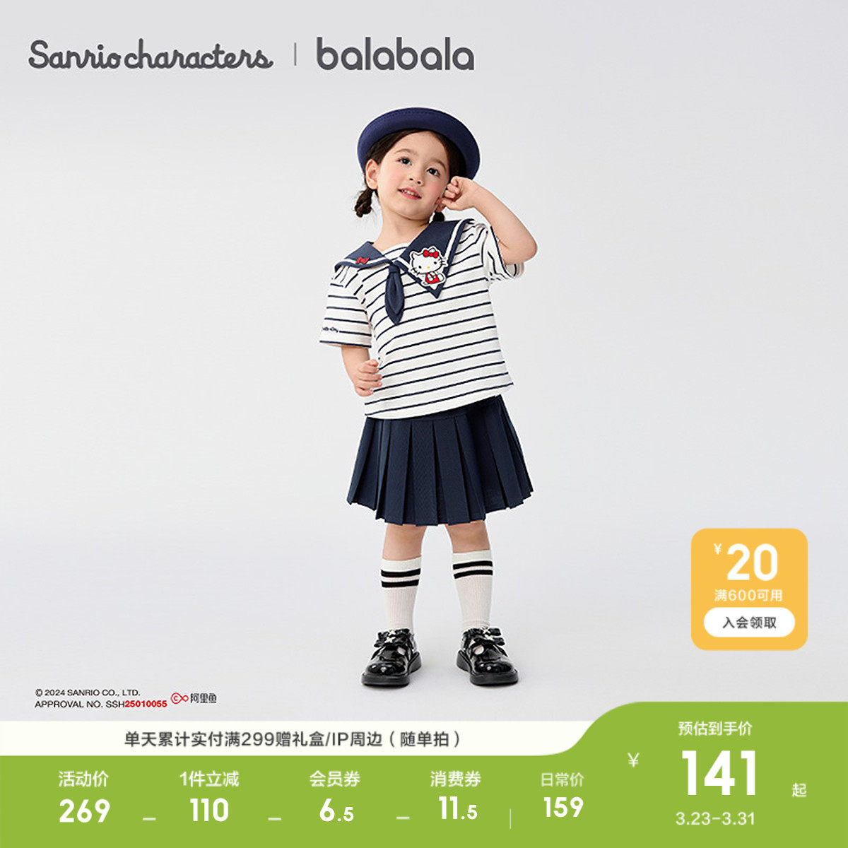 【HelloKittyIP】巴拉巴拉童装女童短袖套装2026夏休闲两件套时尚