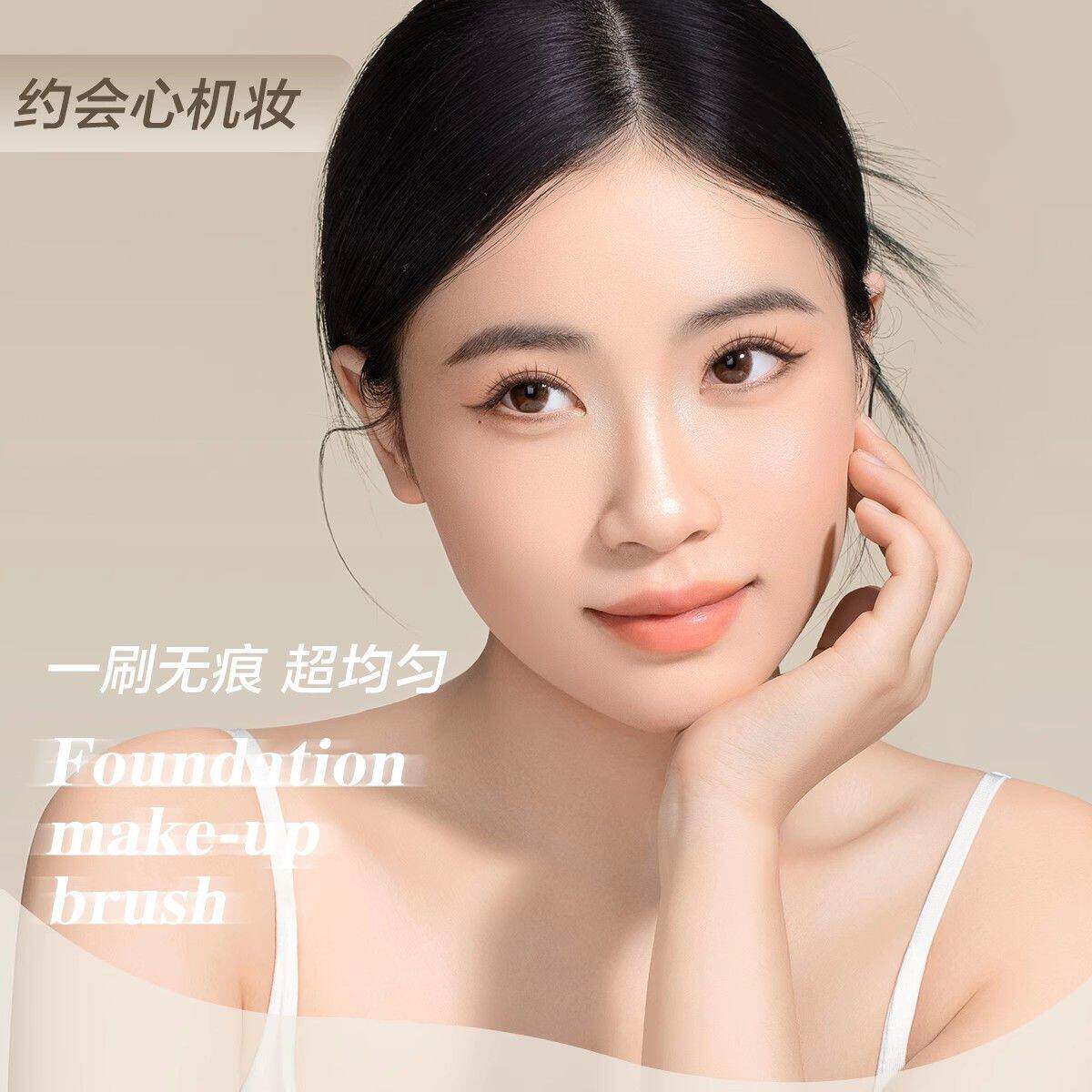 尔木萄鱼尾薄弧一字型粉底刷扁平头不吃粉刀锋无痕粉底液化妆刷子